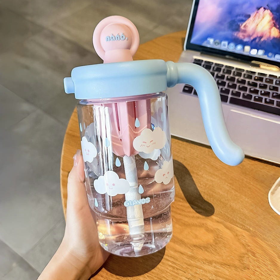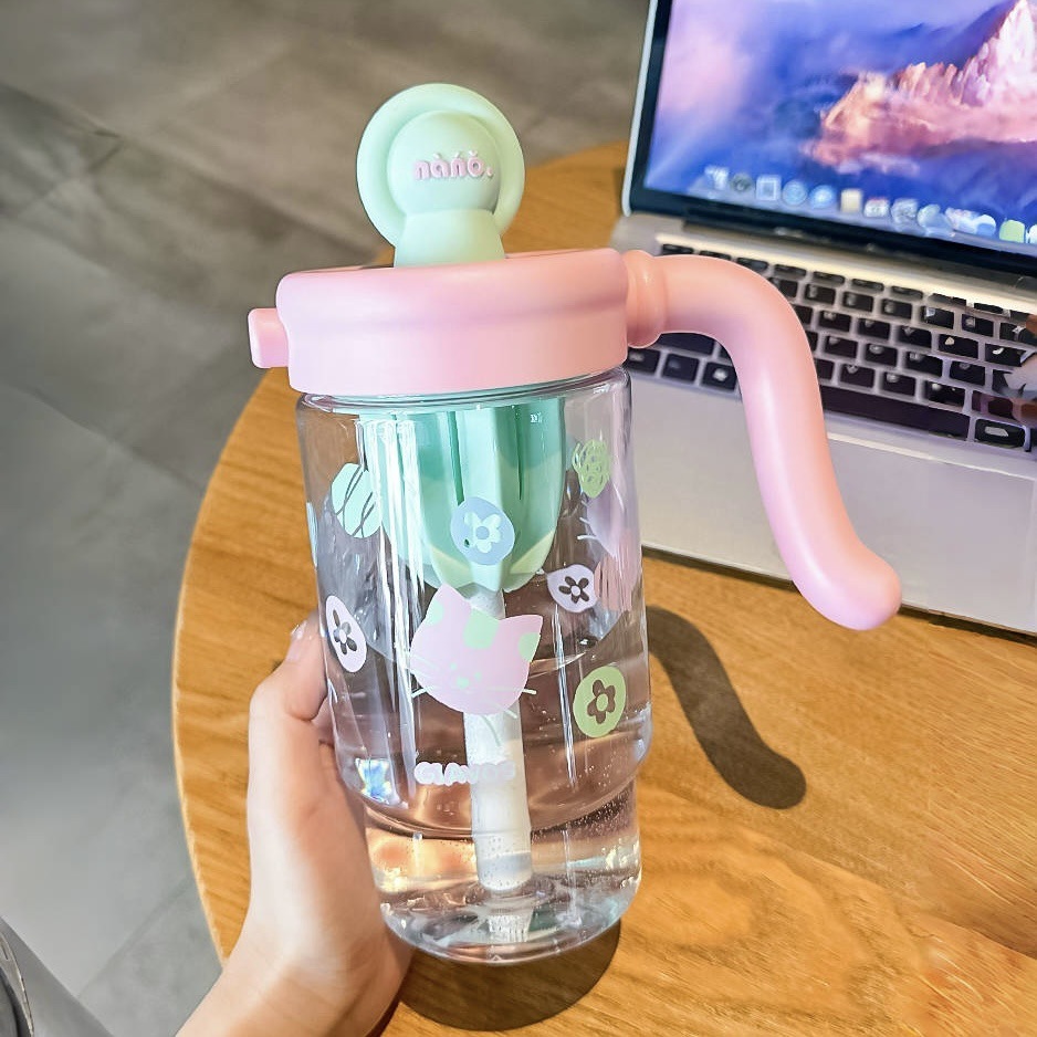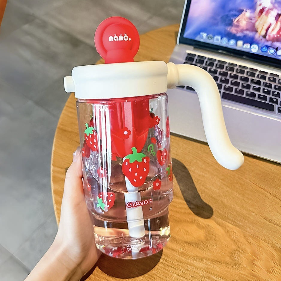 女性用アイスボトル 大容量 持ち手付き 耐熱性 茶葉抽出可能 ストロー付き