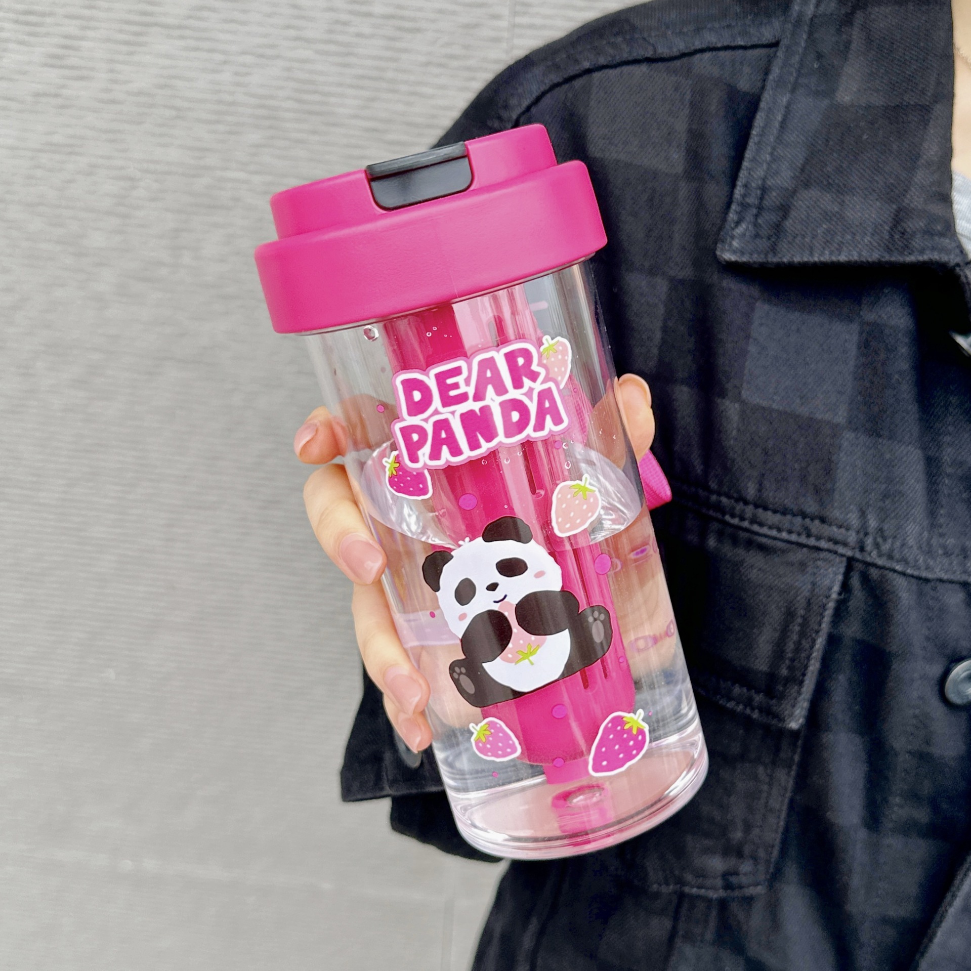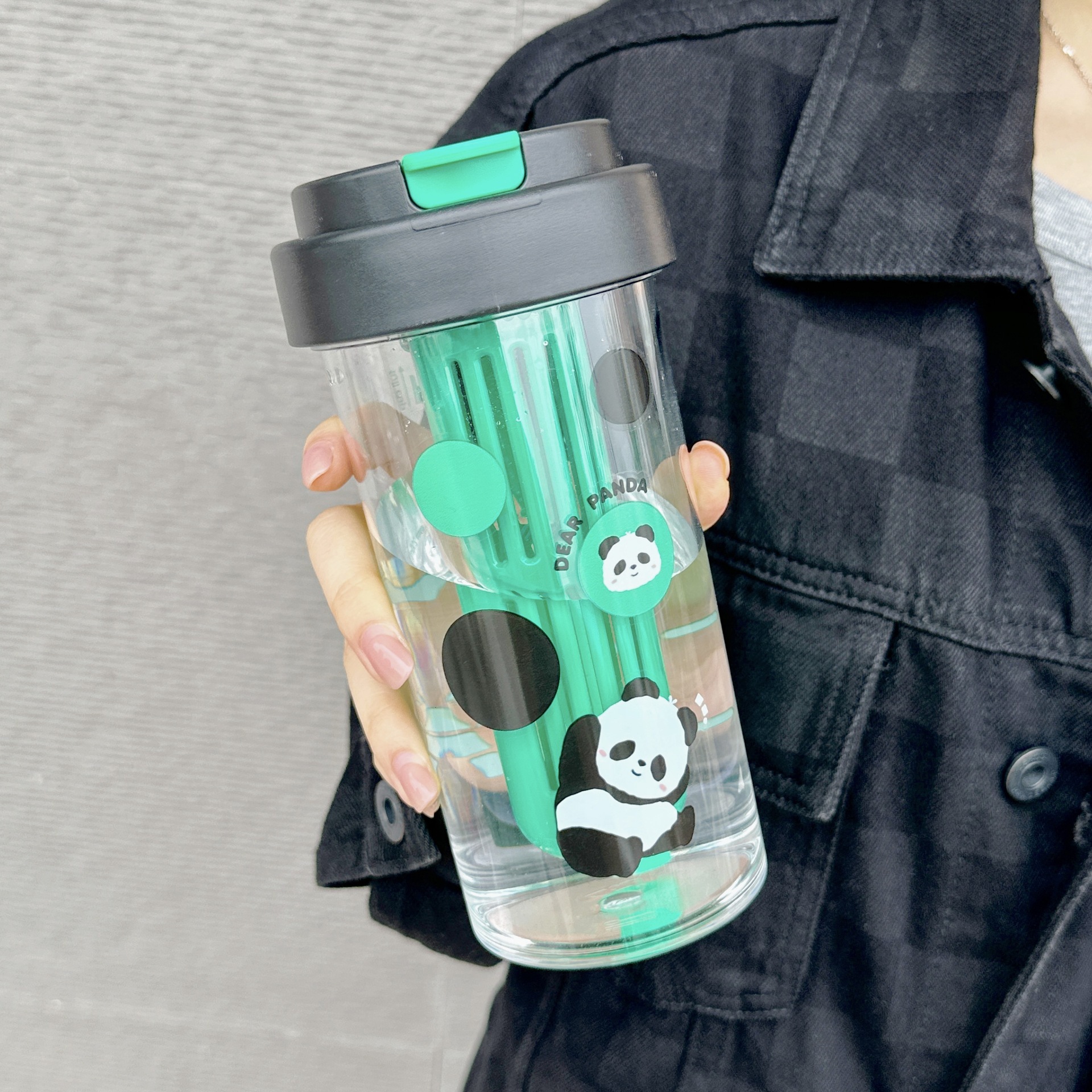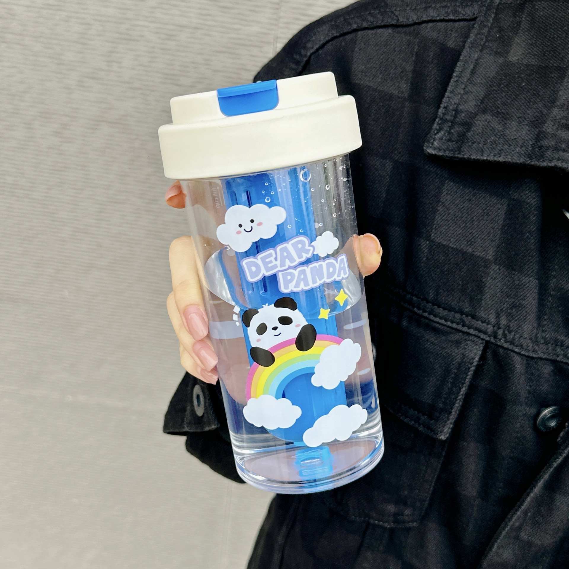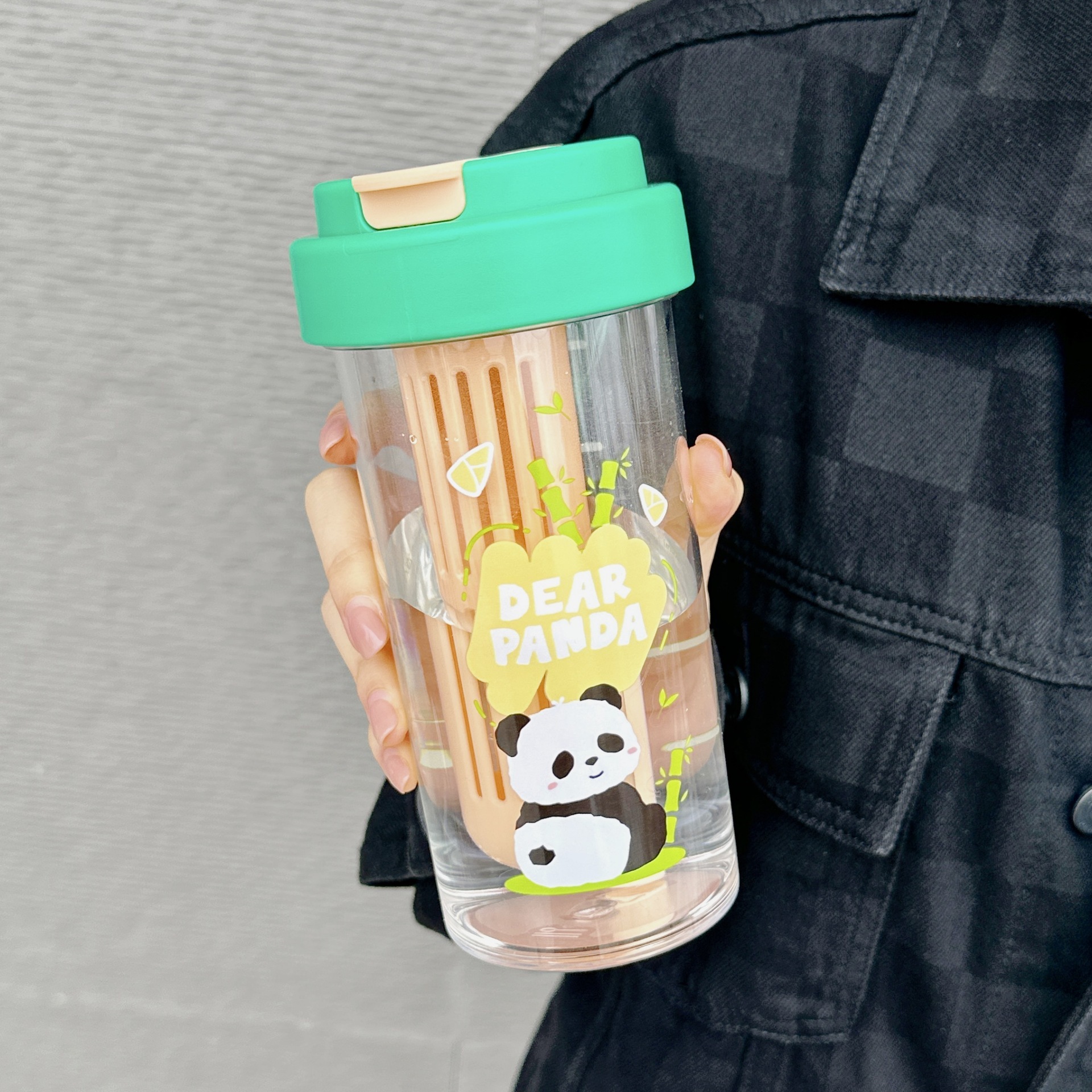 茶葉と水分離可能ボトル カートゥーン柄 パンダ柄 学生用 プラスチック製 茶こし付き 茶葉抽出用 通気孔付き オフィス用 ストロー付き