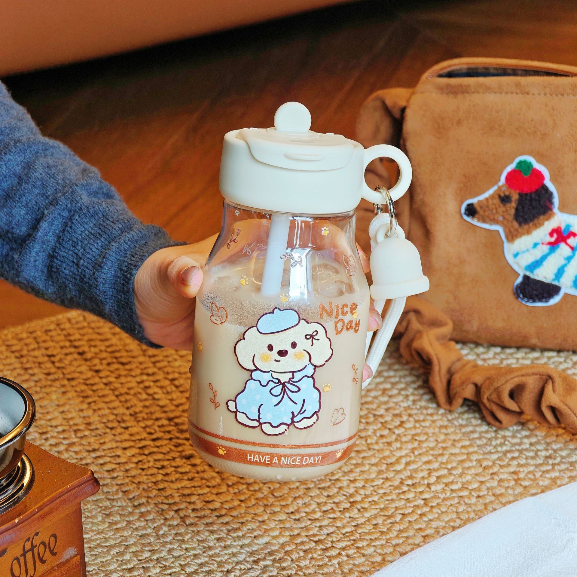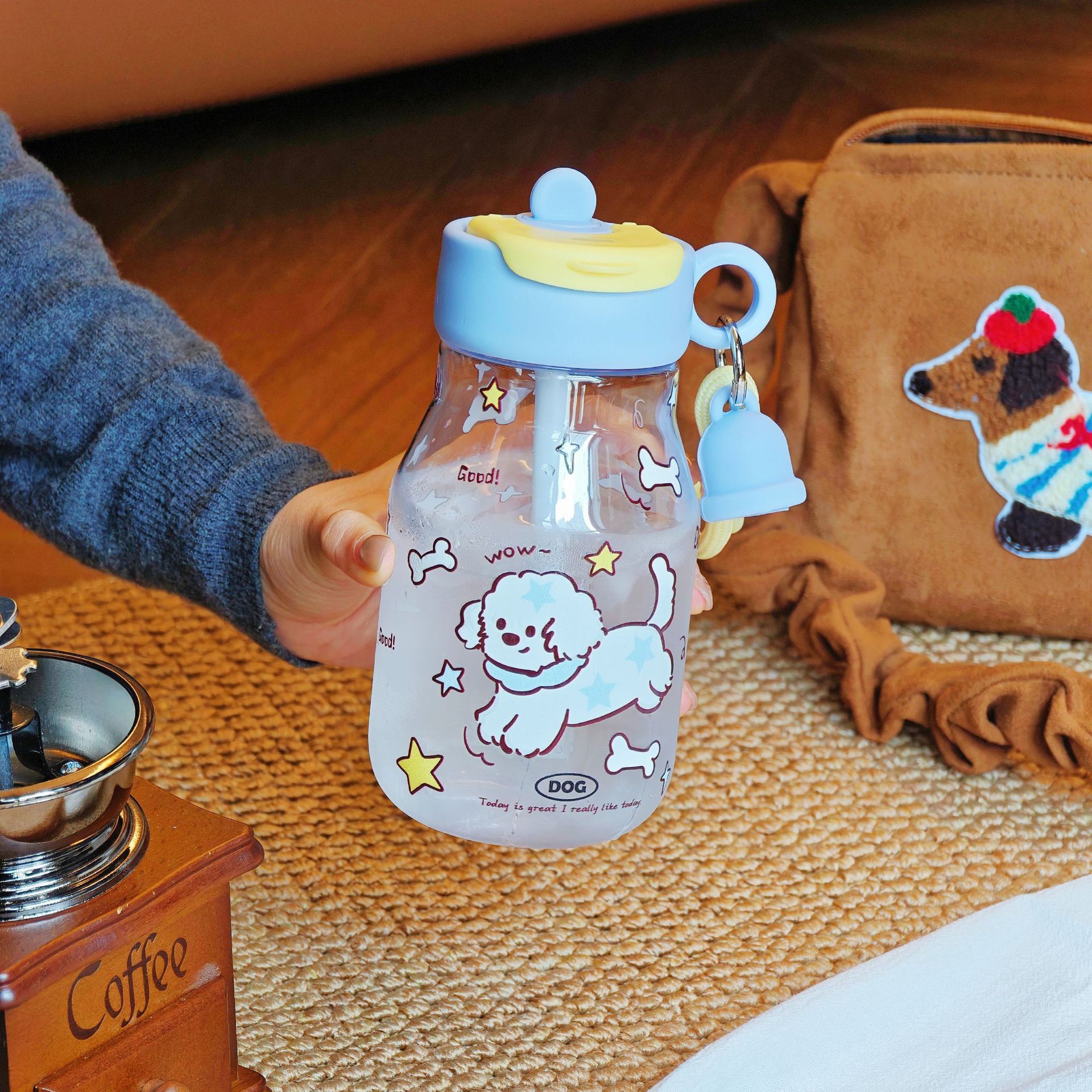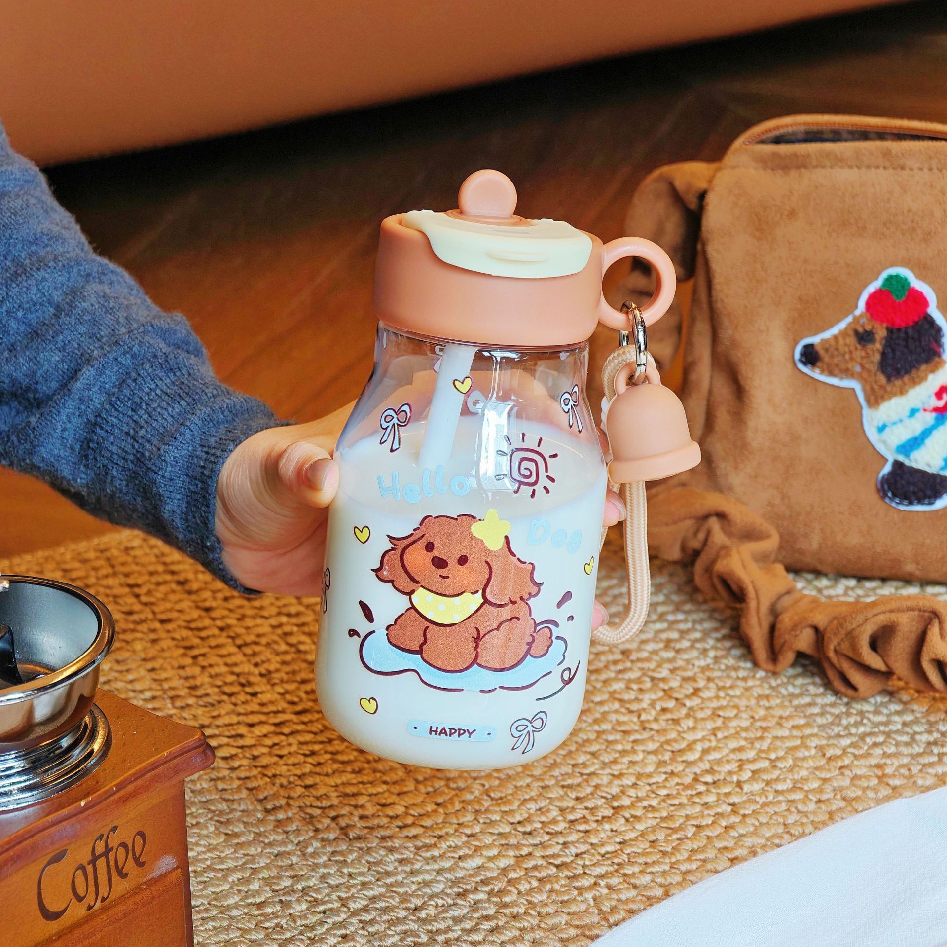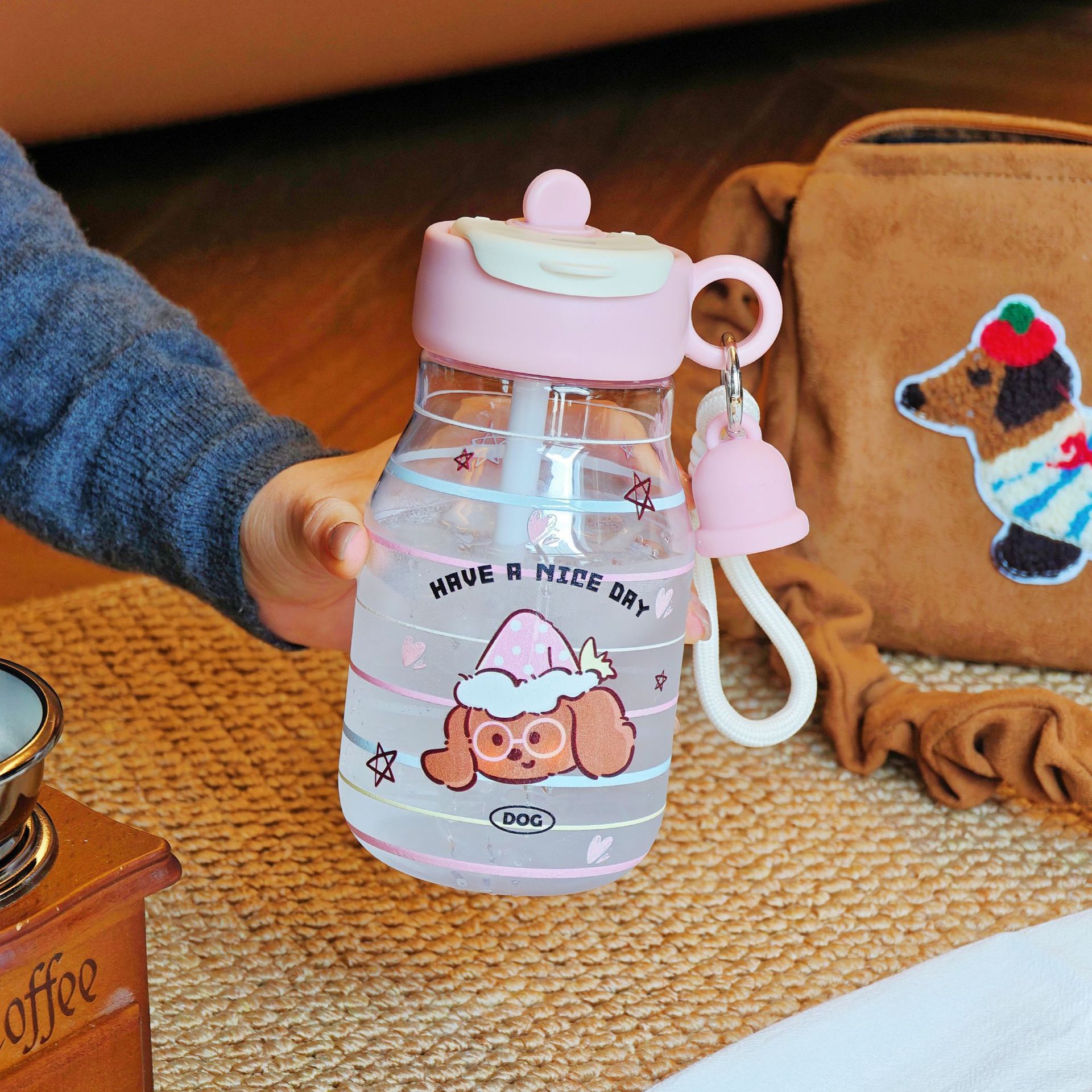 学生用 カートゥーン柄ボトル 2WAY飲み口 可愛い 持ち運び便利 ストロー付き 女性用 アウトドア用 通気孔付き 持ち運び便利 プラスチック製