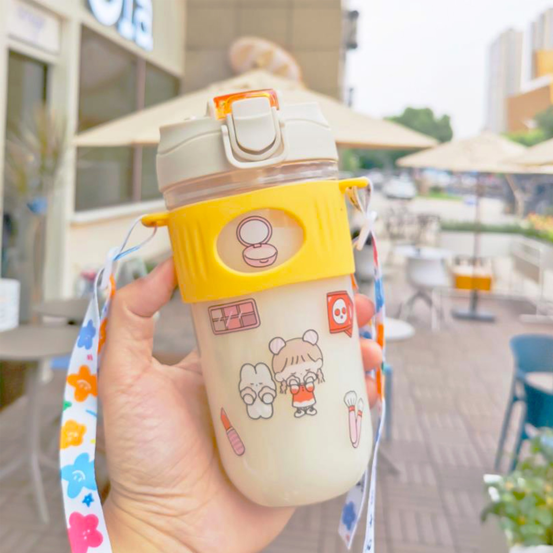 耐衝撃性 コーヒー用ボトル 2WAY飲み口 ストロー付き 持ち運び便利 ボトル 学生・カップル用 オフィス用 アウトドア用 ショルダーストラップ付き カップ付き
