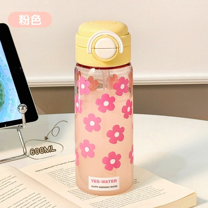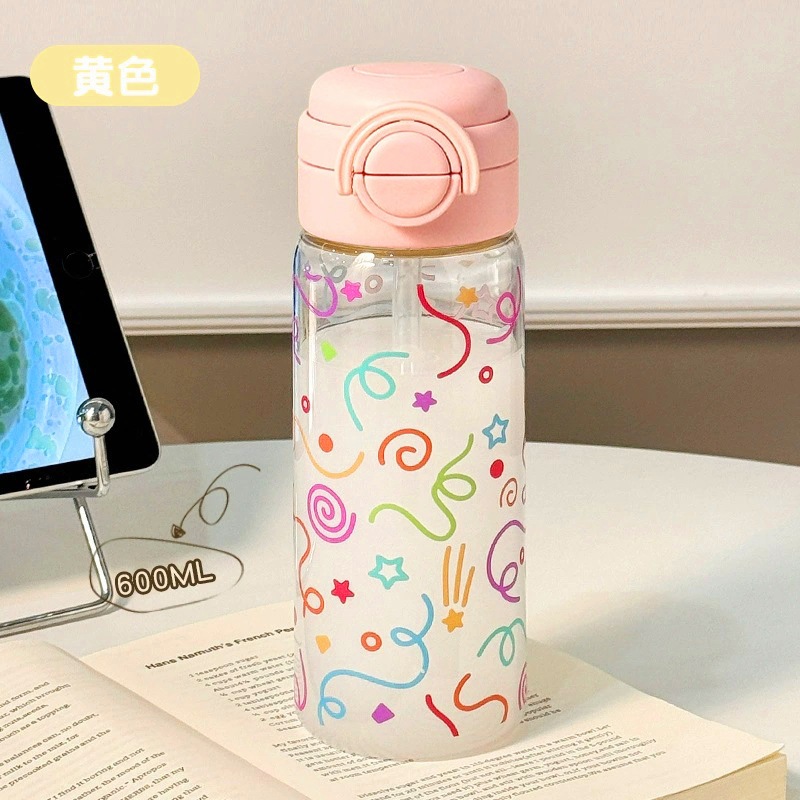 女性用ボトル 持ち運び便利 可愛い 2WAY飲み口 ストロー付き 学生用 スポーツ用 耐衝撃性 持ち運び便利