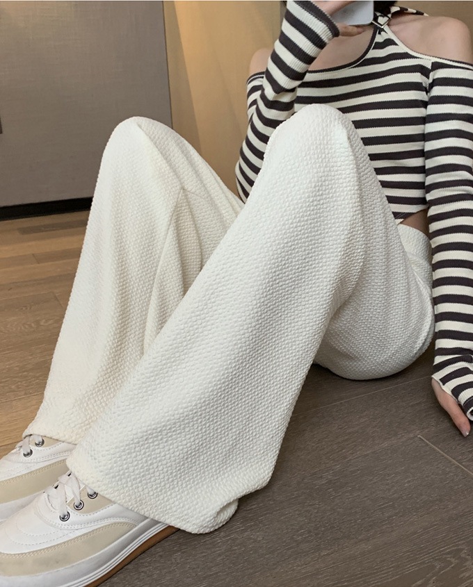 【新品発売】パンツ エンボス加工 凹凸感生地 ワイドパンツ ストレートパンツ ウエストゴム 春夏 紐付き 調整可