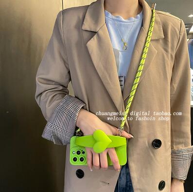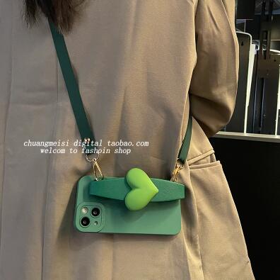 スマホケース ショルダー簡単なグリーン可愛いheart携帯ケースiphone 12 pro 11 promax女性モデルxsmaxシリコン13 mini落下防止保護カバーxr斜め掛けロープ