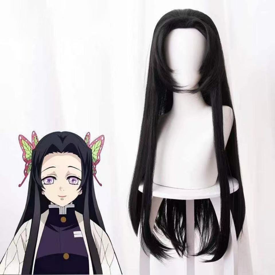 蝶香奈恵黒ロングコスプレ頭皮偽毛鬼滅の刃かつらをシミュレーション