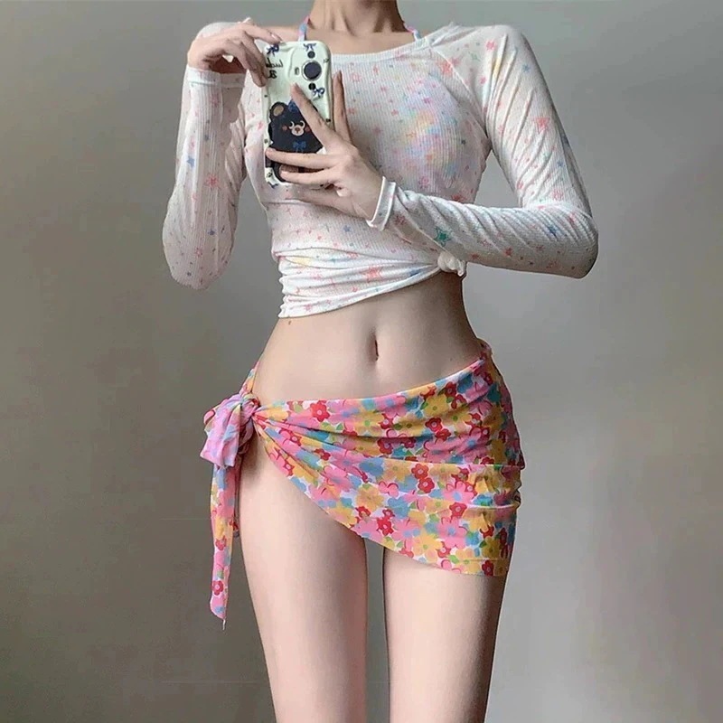 韓国ファッション 水着 レディース 小花柄 爽やか カラフル プリント プリーツ ビキニ 温泉 海辺 バカンス