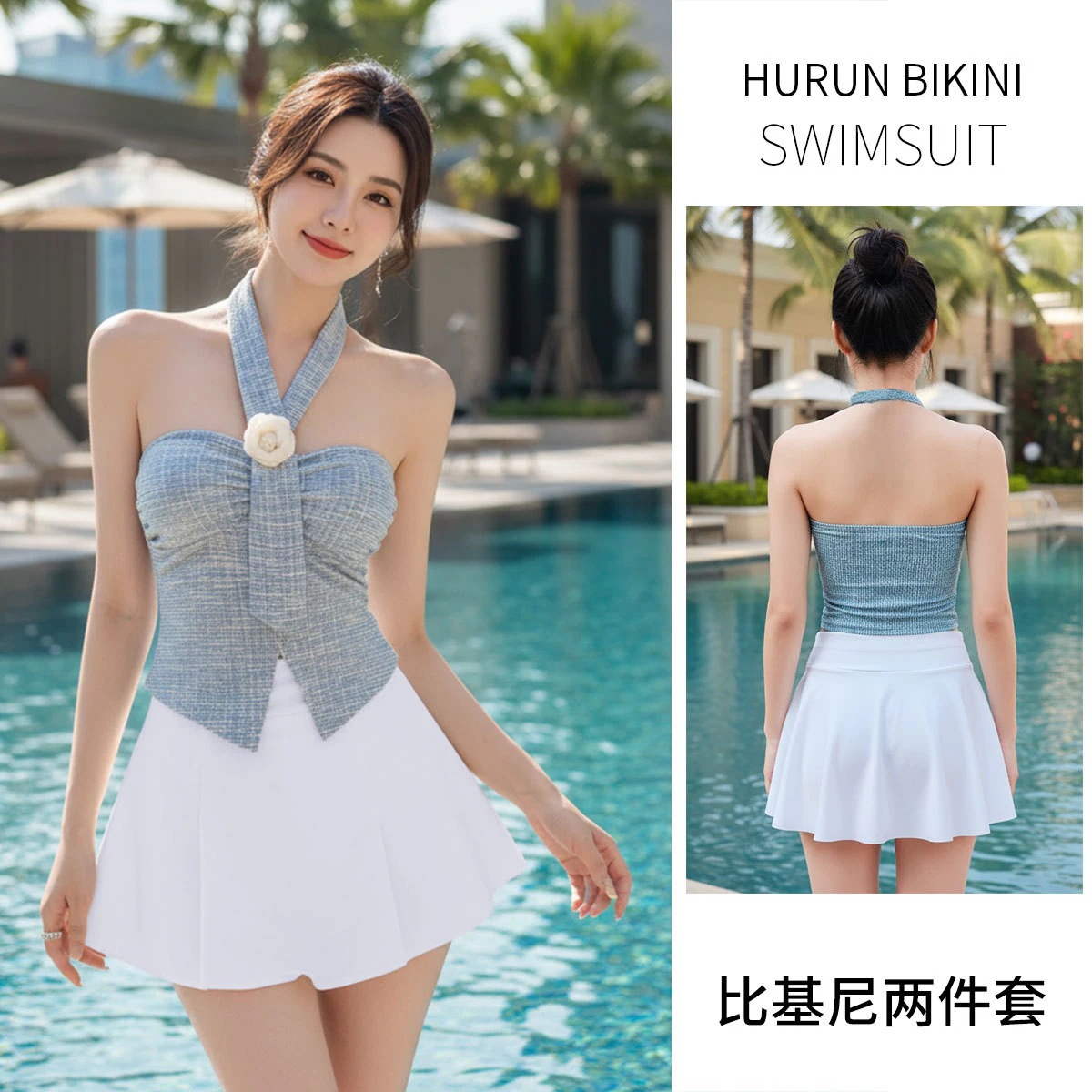 韓国ファッション 水着 レディース フレンチスタイル レトロ ニッチ ネックストラップ 花柄 ストラップレス スカートタイプ ツーピース 水着 海辺 温泉 リゾート