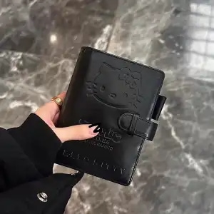 キティ猫黒革a 7ルーズリーフ手帳高容貌値手動携帯手帳日手帳