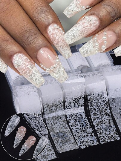 1箱 ホワイトレースネイルアートフォイルセット ネイル転写ステッカー フラワーペタル レトロレース転写紙 DIYマニキュア ネイルデコレーションアクセサリー (接着剤は含まれていません) ネイル用品