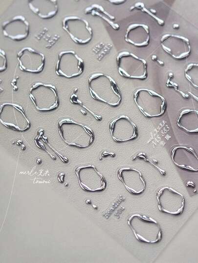 1個 5D シルバー モダン ミニマリスト メタルネイルステッカー高級ハート型ネイルアートデカールDIY 自己接着ネイルステッカー ネイルサプライ