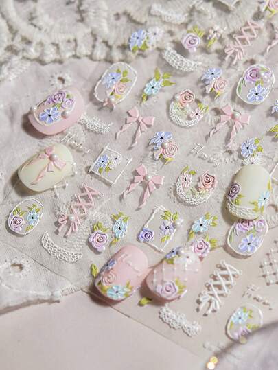 1個 5Dクリスタルラインストーン高品質ネイルアートステッカースウィートガールスタイルバレエネイルステッカーレースガーデンネイルステッカー上品なガールステッカー女の子のネイルに最適なギフト ネ