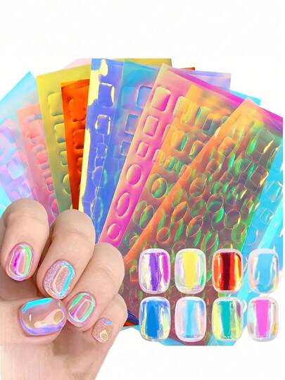 オーロラ 透明 アイスキューブ ネイルステッカー 6枚セット - 3Dガラス ペーパー ホログラフィック アイスキューブ フォン転写 ネイルグリッター - 自己接着式 レインボー 反射 韓国製 ネイル
