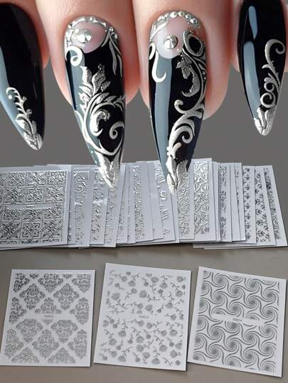 30個 ゴールドフォイル フラワーネイルアートステッカー自己接着性ネイルデカール女性用ネイルサプライ30個 3Dエンボス フローラルネイルステッカー(ゴールド)ゴールドレース フローラルエンボ