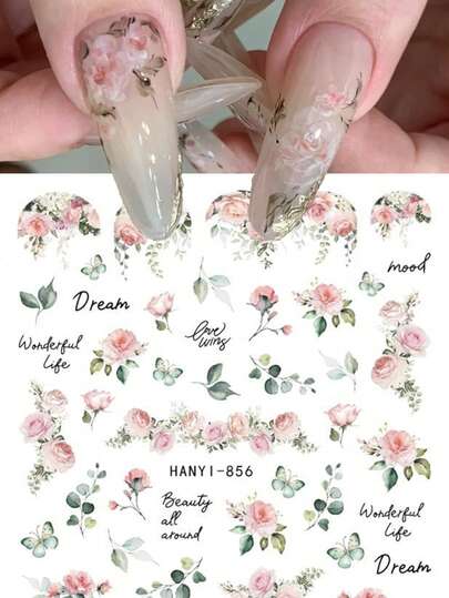 1個 ネイルアートステッカー フレンチネイルチップ ヴィンテージピンクの花びらのバラ 接着式スライダー 2Dネイルデコレーション ネイルアートマニキュア ビューティーネイルデコレーション