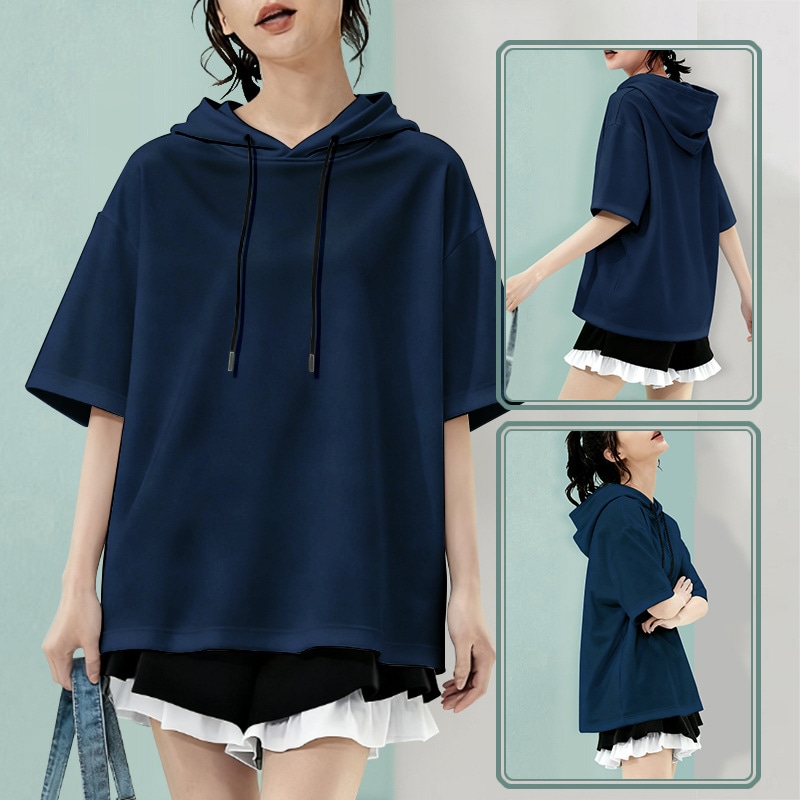 半袖フード付きパーカー ジップ 夏用 パーカー レディース おしゃれ 半袖 トップス 薄手 ジップパーカー 大きいサイズ ゆったり カーディガン フード 可愛い フードパーカー ジッ
