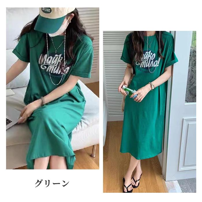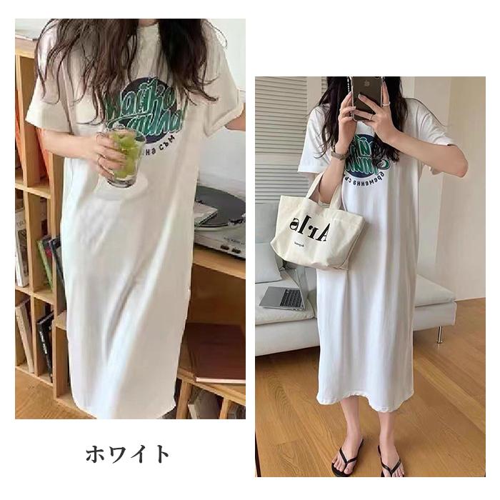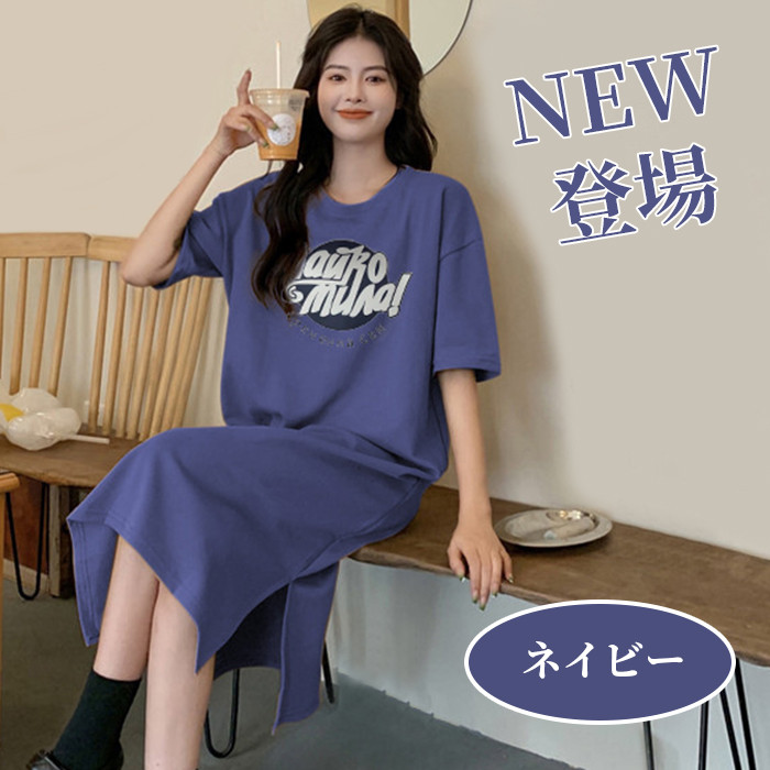 【人気新品】ワンピース レディース tシャツ ルームウェア 夏用 シャツワンピース ロングワンピース 半袖 50代 40代 部屋着 ロゴ アウトドア マタニティ
