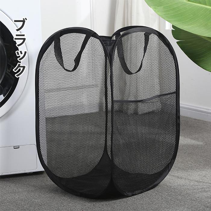 【人気新品】ランドリーバスケット 折りたたみ スリム メッシュ おしゃれ 大容量 黒 洗濯かご コンパクト 持ち手つき 収納 おもちゃ入れ