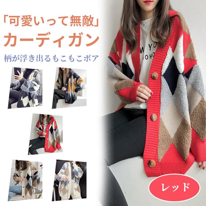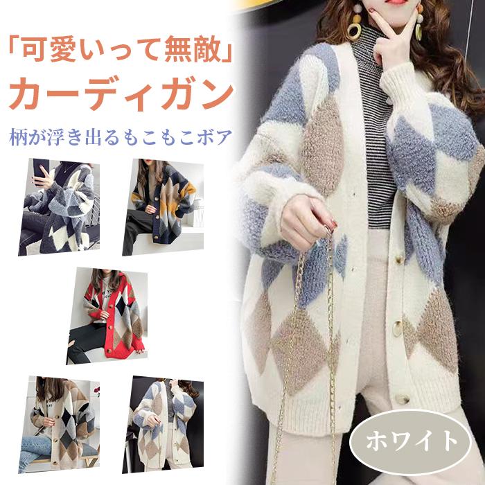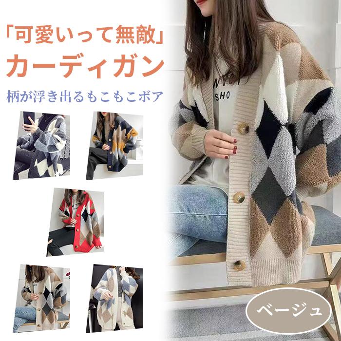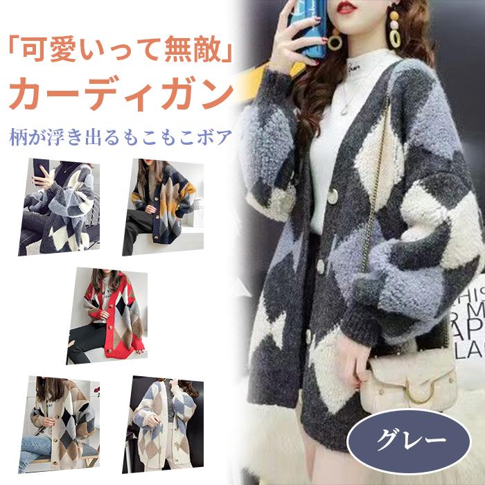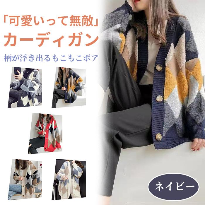 【人気新品】カーディガン レディース 冬 ニット ゆったり トップス チェック柄 長袖 アーガイル柄 おしゃれ アウター カジュアル 体形カバー