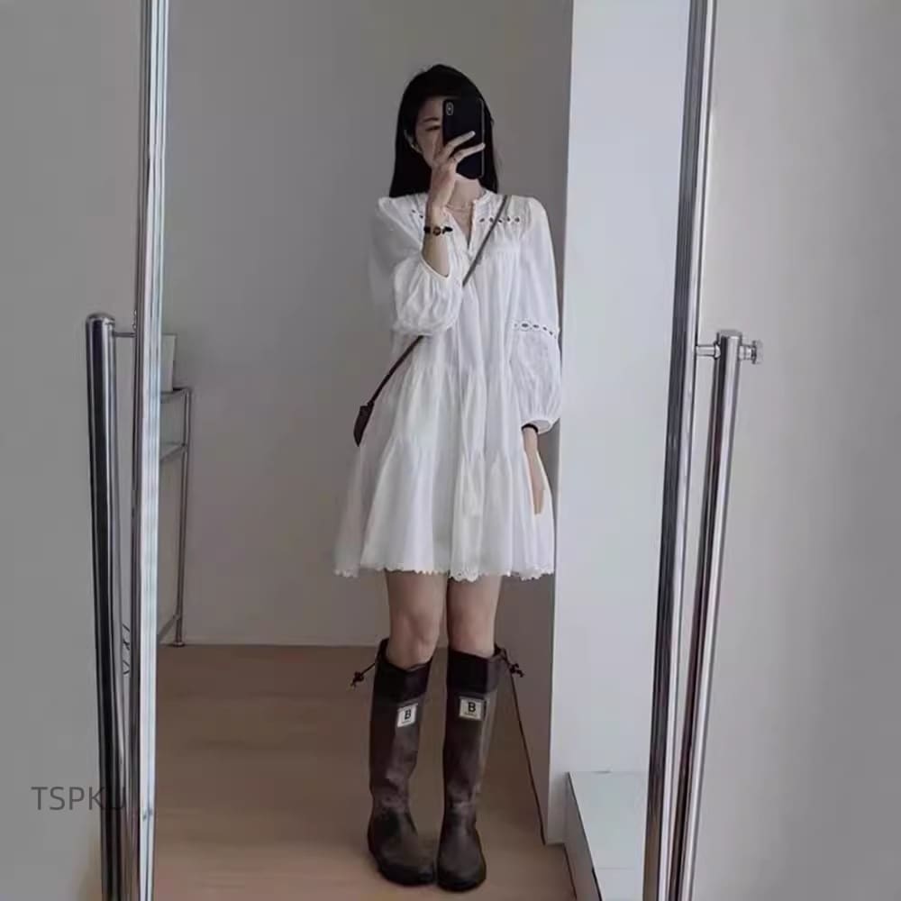 【限定 SALE】ワンピース フレンチ ホワイト パフスリーブ シャツワンピ レディース 2026 新作 春 秋 ロングスリーブ 裏地付き ゆったり カジュアル 旅行 お出かけ