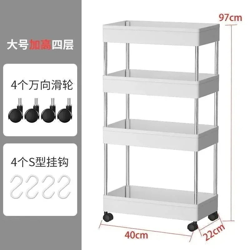 FF取り外し可能なポータブル収納ラック キッチン 床収納収納ラック 多層バス トイレ プラスチック棚 キャスター付き