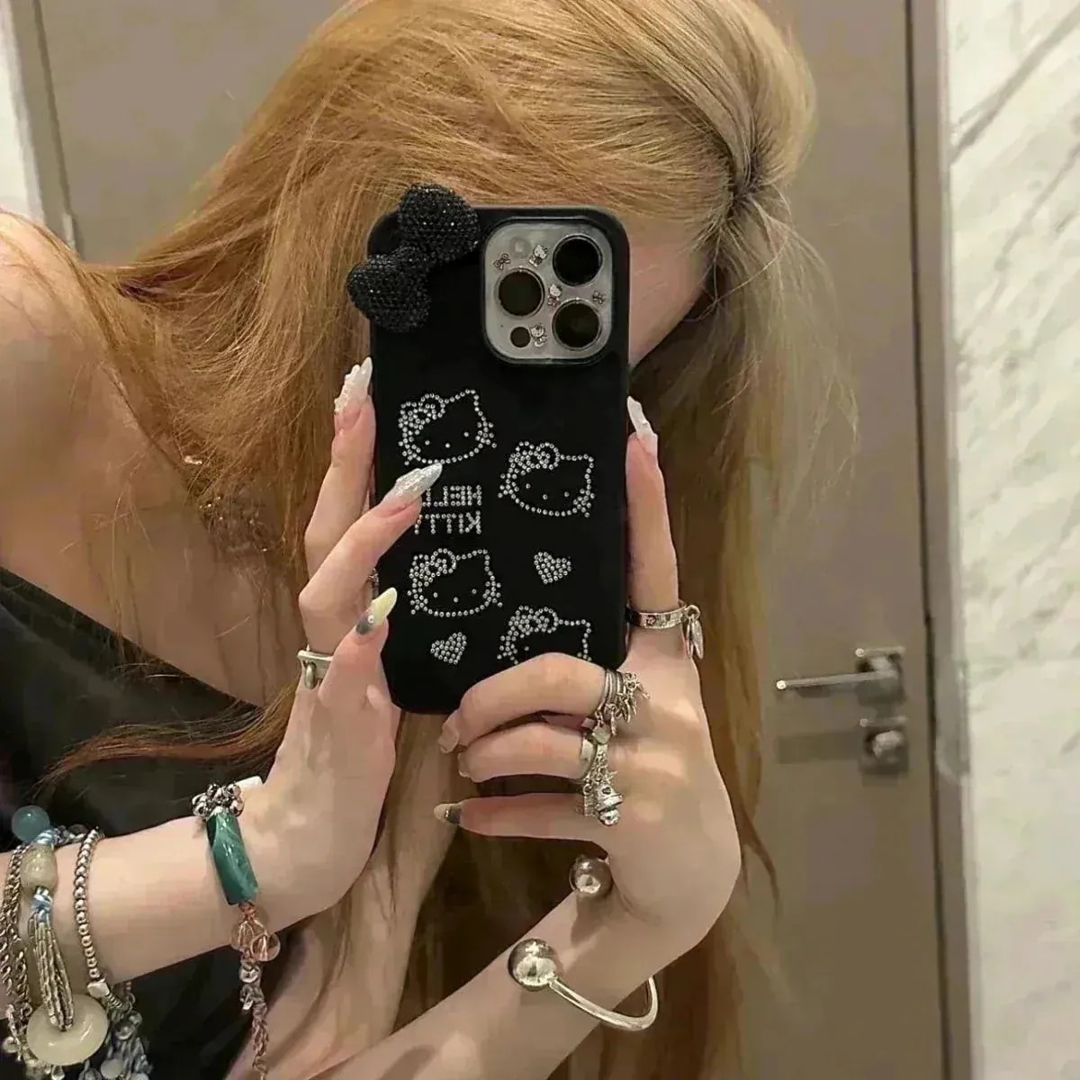 サンリオ每日更新キティ iphoneケース かわいい キティー ちゃん ラインストーン キラキラ iPhone15/14/13/12/11 ケース PRO PROMAX XR 8 ケー D272