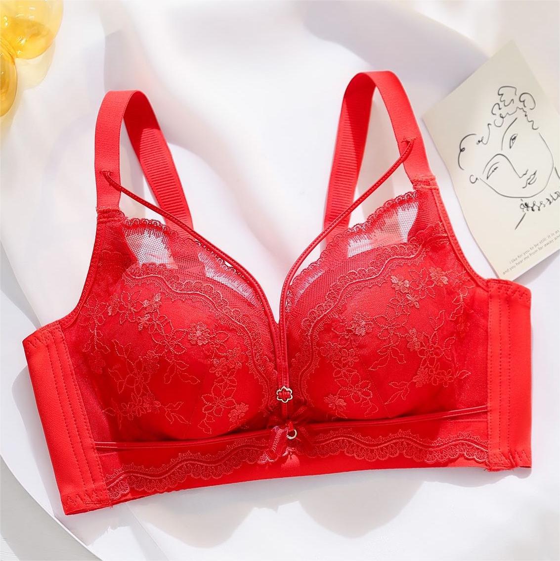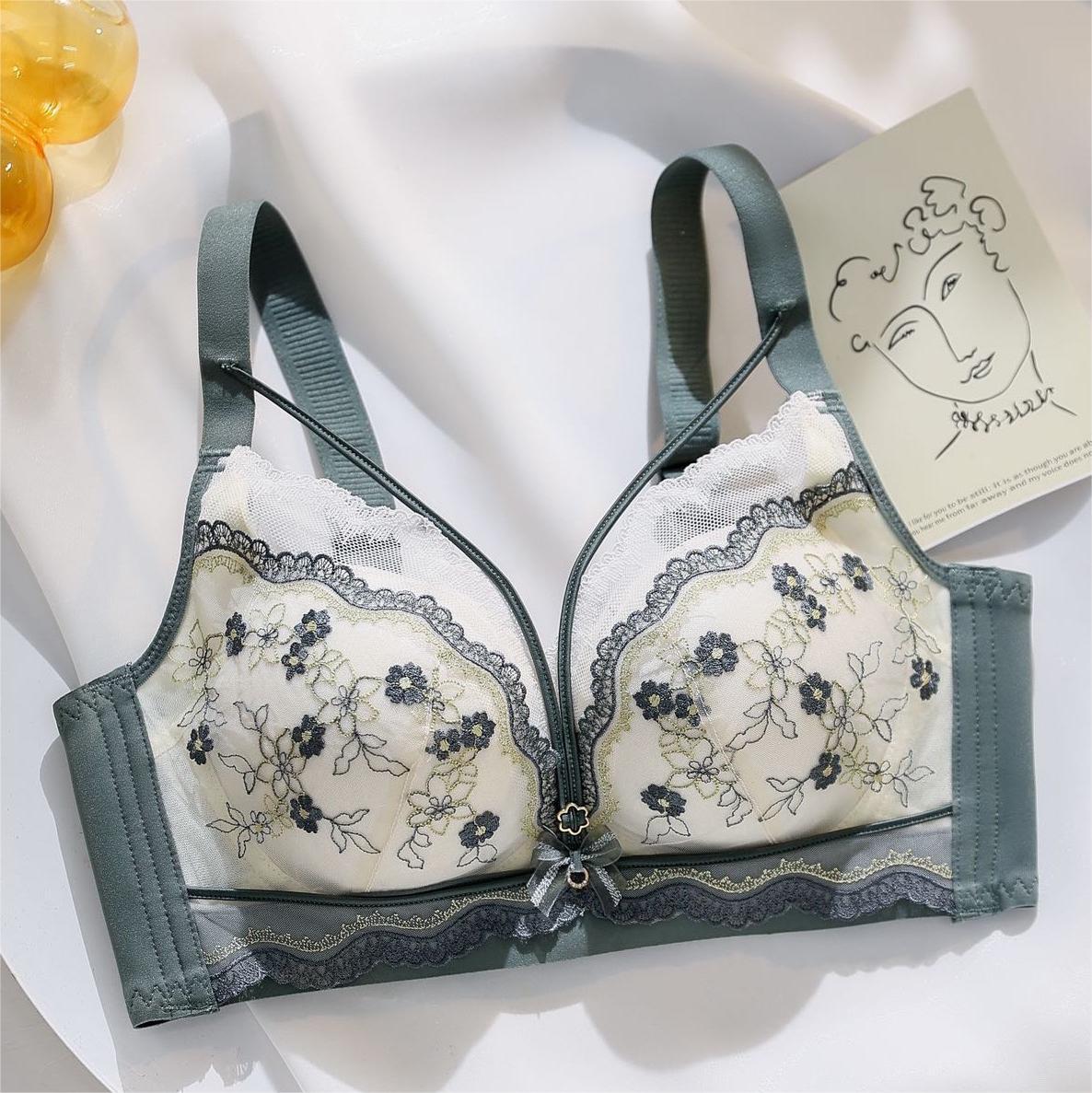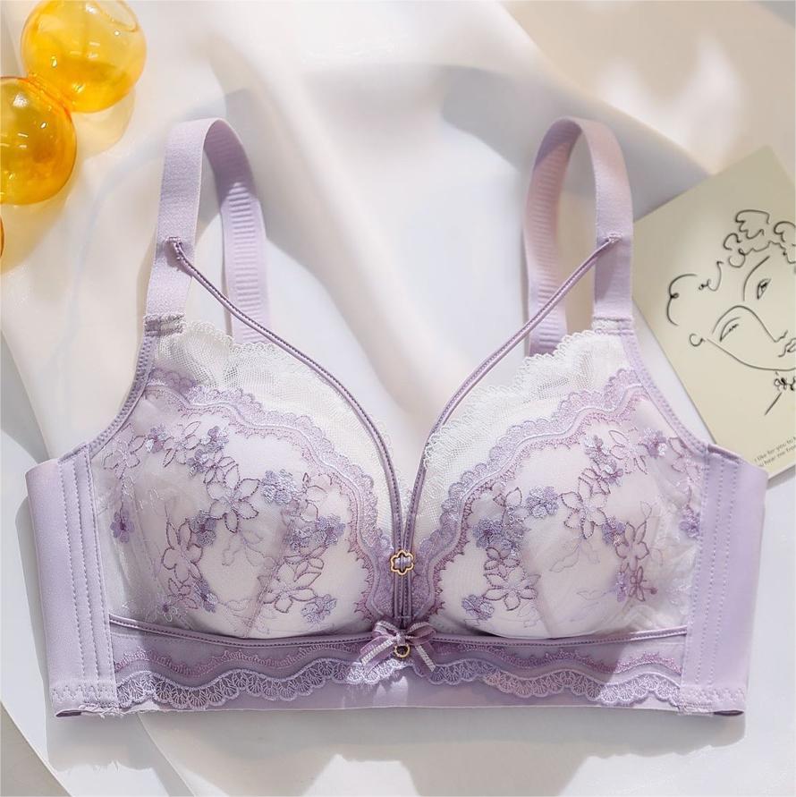 レースブラジャー女性の官能的な小さな胸 ギャザー刺繍スチールリングなしアンチサグ調整可能な下着ブラジャー