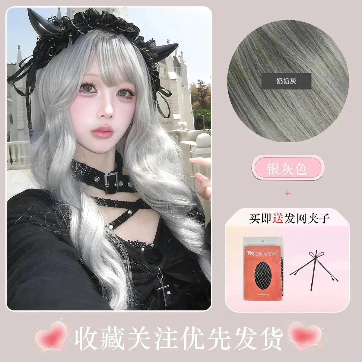 本日の限定商品リトルウィッチロングカーリーヘア サブカルチャー グレー ウィッグ ウィッグ ロング 前髪ウィッグ メイド服 サンタコス コスプレ クリスマスコスチューム