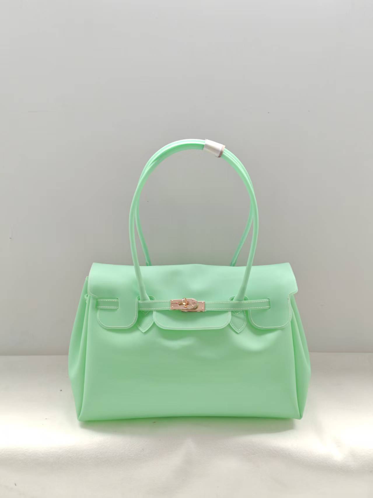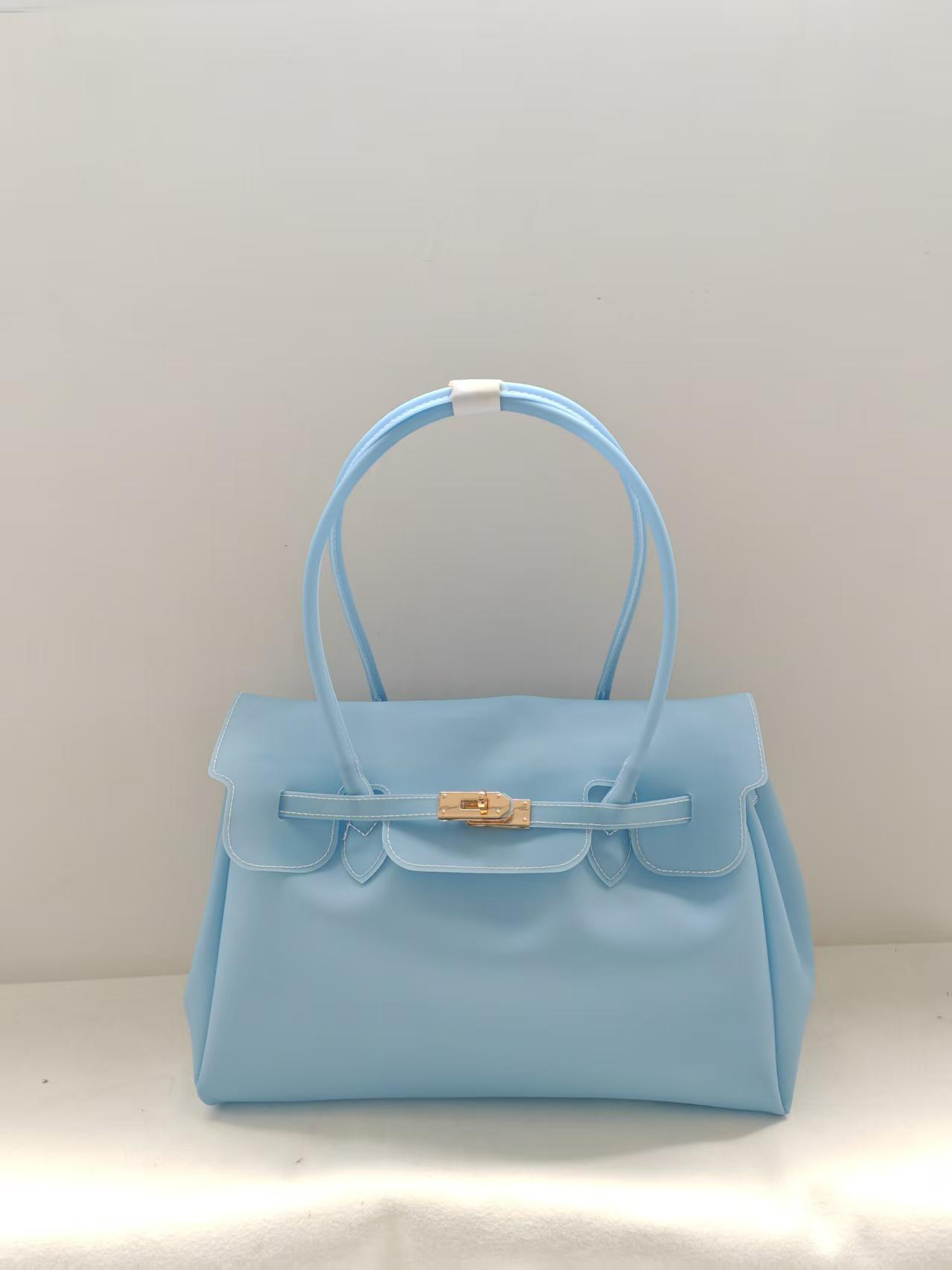 ゼリーバッグキャリーバッグロック縫い目大容量ハンドバッグPVCショルダーバッグ