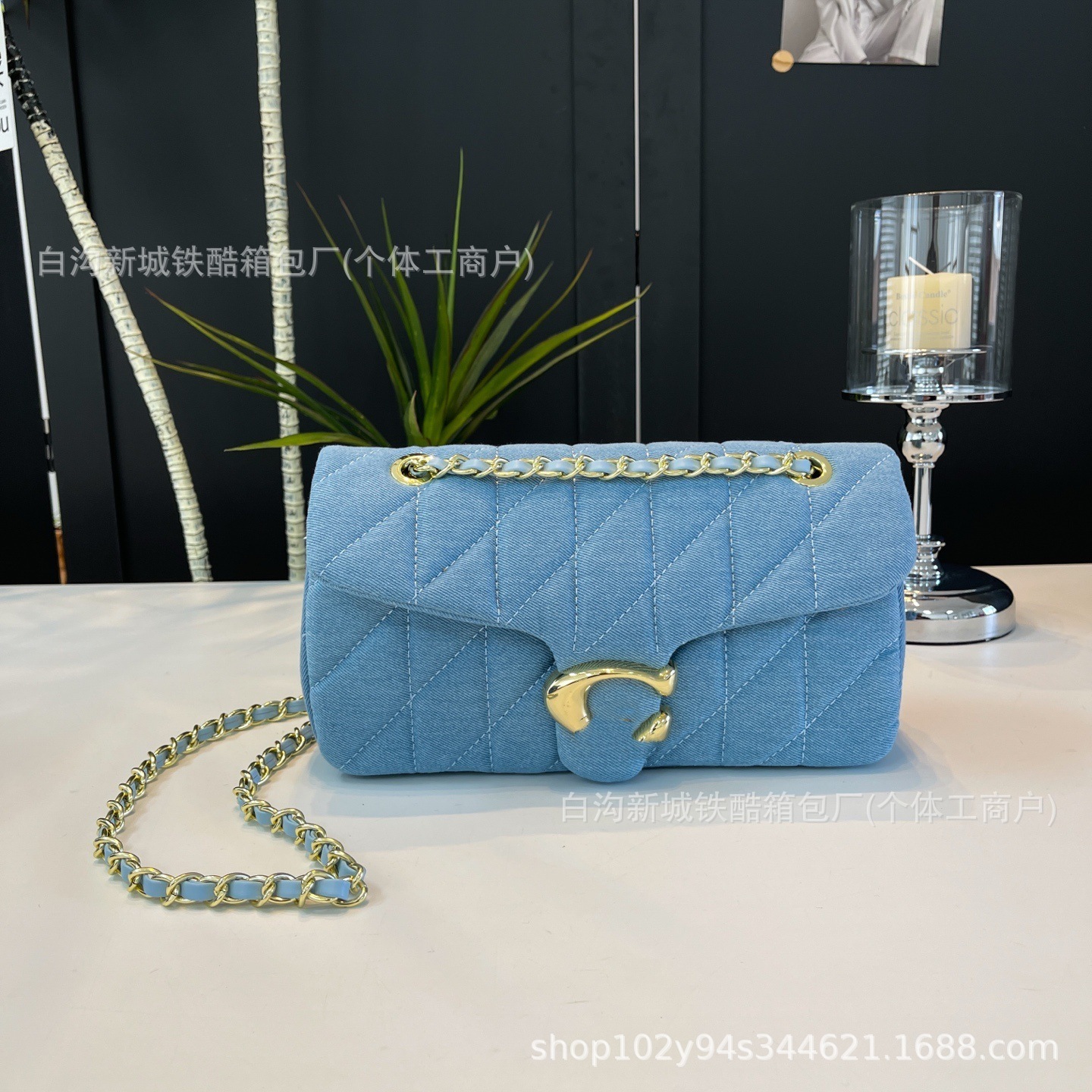 新商品の菱格のデニムのストライプの酒の神のカバンの片肩の手提げ袋は斜めに脇の女性のカバンを掛けます