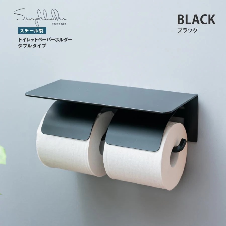 団体購入30件トイレットペーパーホルダー 2連 おしゃれ diy 北欧 棚付き ダブル 賃貸 ツイン スチール 穴開け不要 ブラック アイボリー 黒 白 高級 シンプル 蓋つき