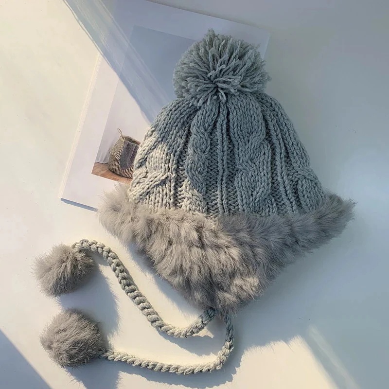新作ハット帽子レディース秋冬ニット帽耳あて防寒保温可愛いニット帽子ファー付き暖かい帽子ニットケーブル編みドッキングニットハットストレッチ裏地付き寒さ対策耳当