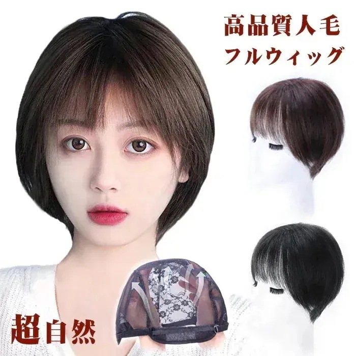 フルウィッグ 人毛 かつら ウィッグ 医療用 レディース ボブウィッグ 人毛 自然 ボブ ショートウィッグ ミディアム 手植え 総手植え ウィッグ エクステ 自然 薄毛 白髪隠