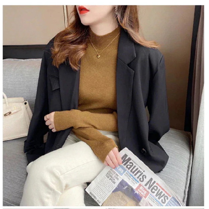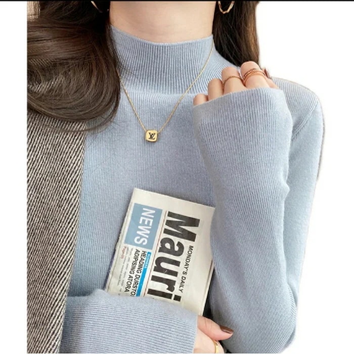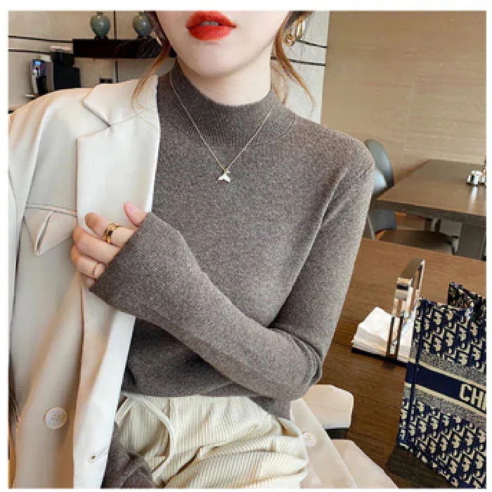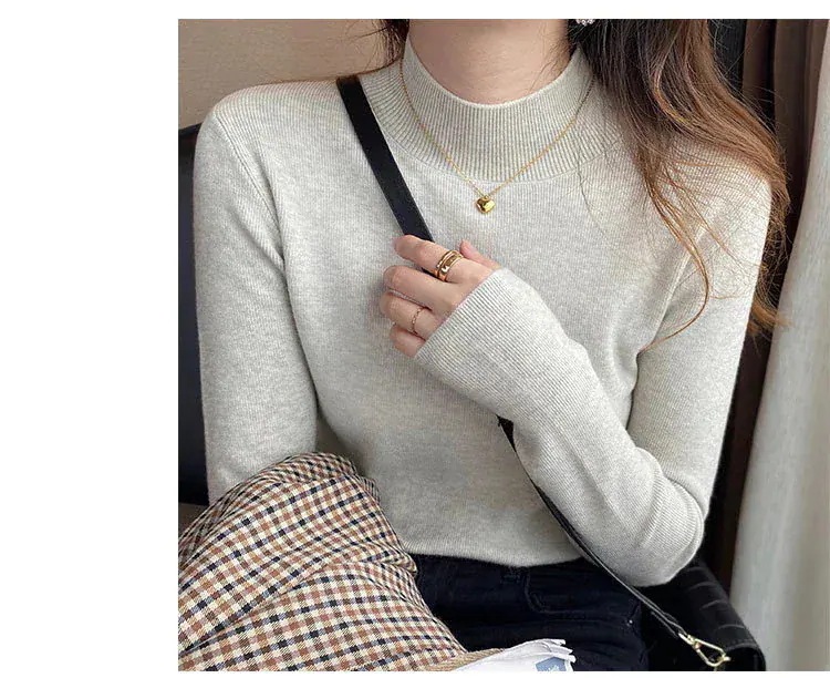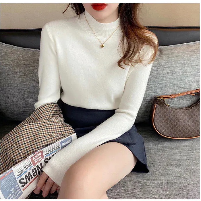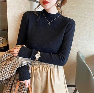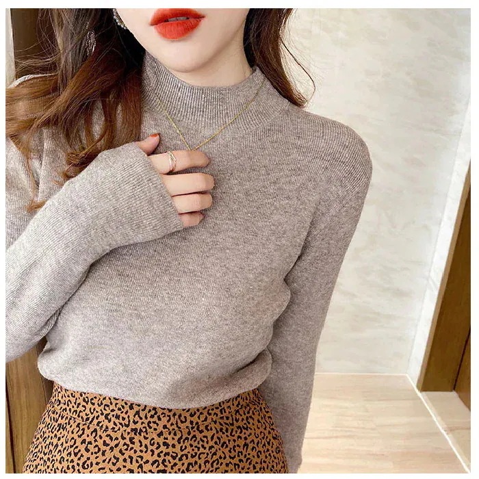 秋冬の新作 韓国ファッション秋冬ニットハイネックセーターハーフハイカラーのプルオーバーソリッドカラー