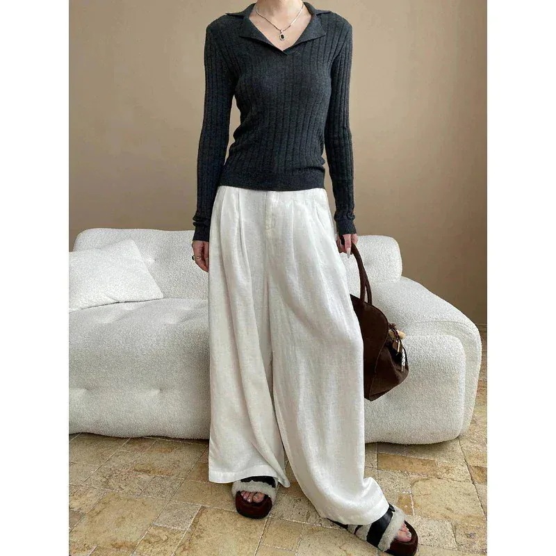 人気なリブニット ベーシックニット ニットウェア 秋冬に着たいポロ襟ニット リブ編み長袖ニットトップス 韓国ファッション