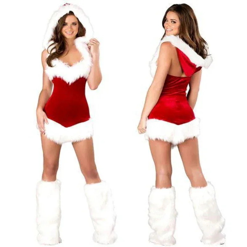 サンタコスプレ レディース クリスマス 脚魅せミニスカートCOS舞台 パフォーマンス 衣装 DS ダンス セクシー クリスマス セット 脚カバー 付き