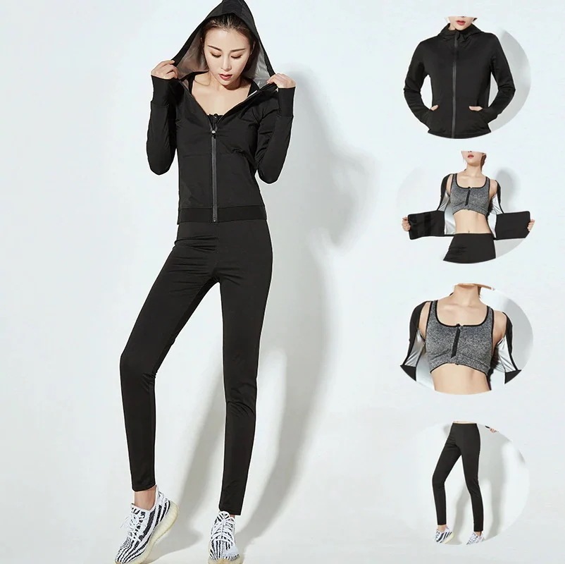超発汗 サウナスーツ レディース 4点セット スポーツウェア トレーニングウェア 脂肪燃焼 上下セット tシャツ パンツ 洗濯可 痩せ セットアップ ダイエットグッズ フィットネス 大きいサイズ