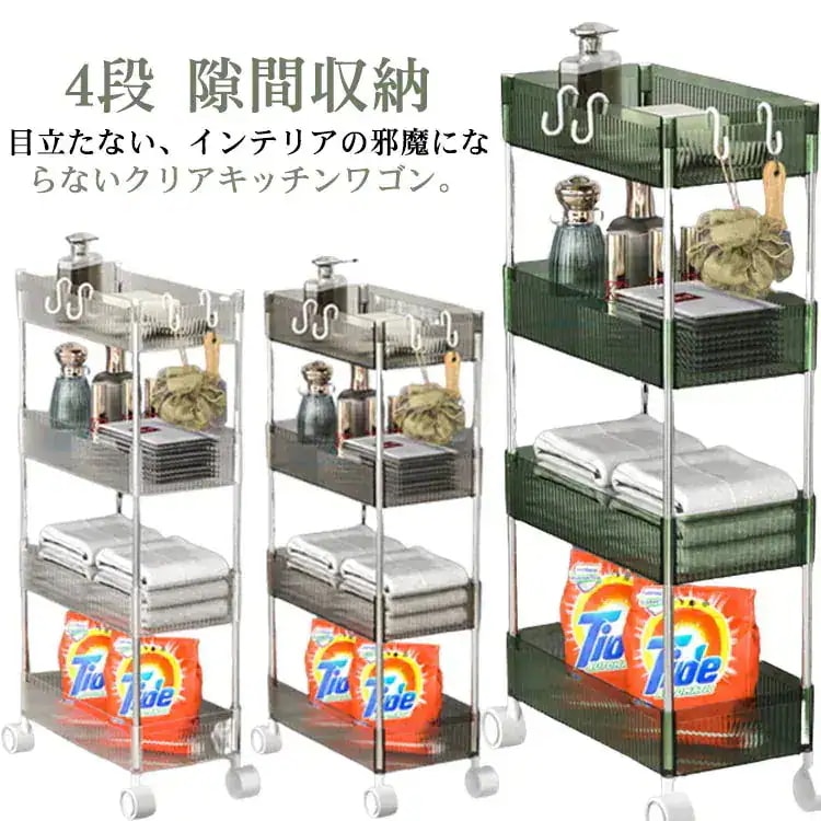 キッチンワゴン クリア ラック キャスター付き 4段 ワイズ 20cm 隙間収納 すき間 透明 キッチンラック 洗面所 ツールワゴン 収納ワゴン 収納ラック 棚 キッチンカート リビン