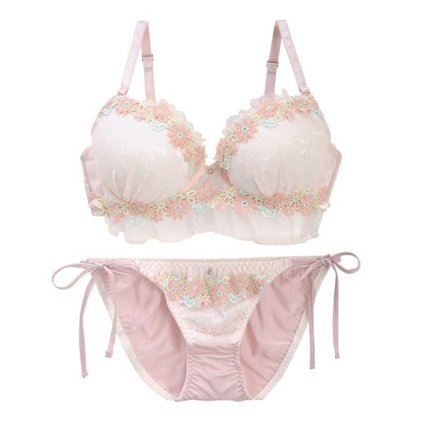 シロハトラブジェリー プリティケミカル ブラセット 大きいサイズ EF 盛り胸 Wパッド サイドリボン ブラ