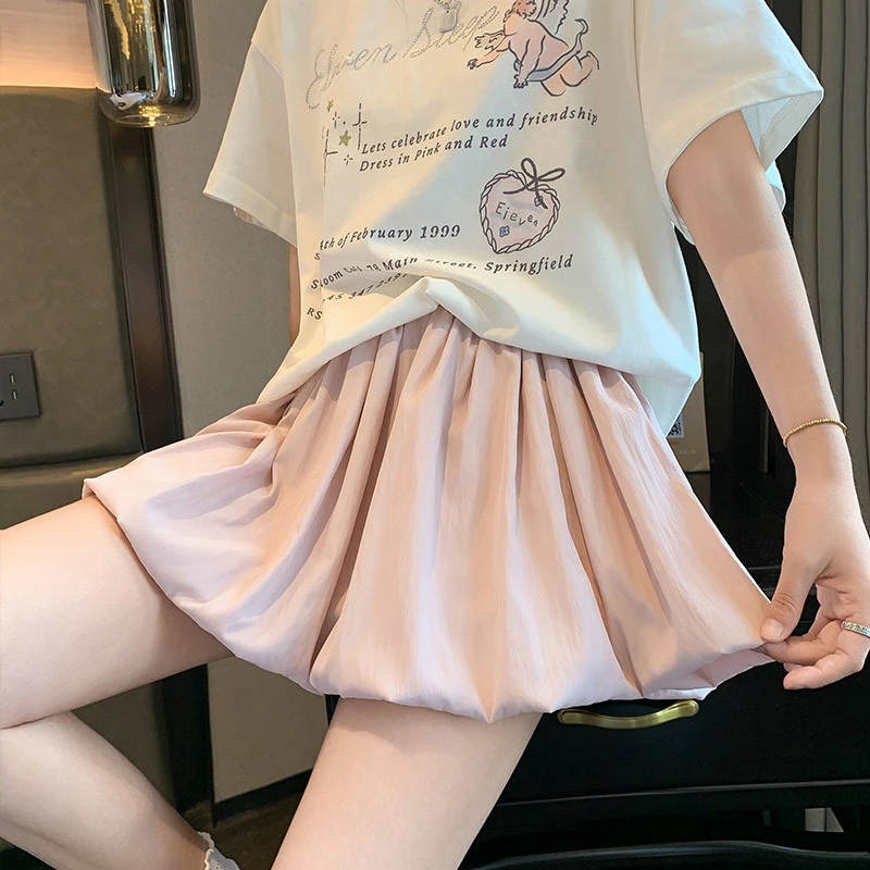 【1つ買うと1つ無料】ピンクの花柄ミニスカート 女性用 夏用 ハイウエスト スリムシルエット Aライン 覗き防止 カボチャパンツ 小柄向け ハーフスカート プリーツスカート ミニスカート