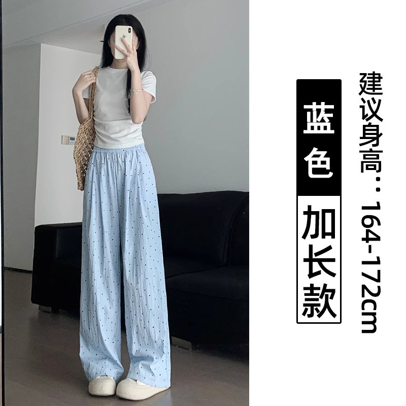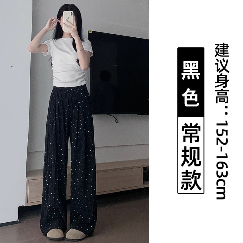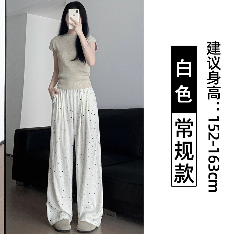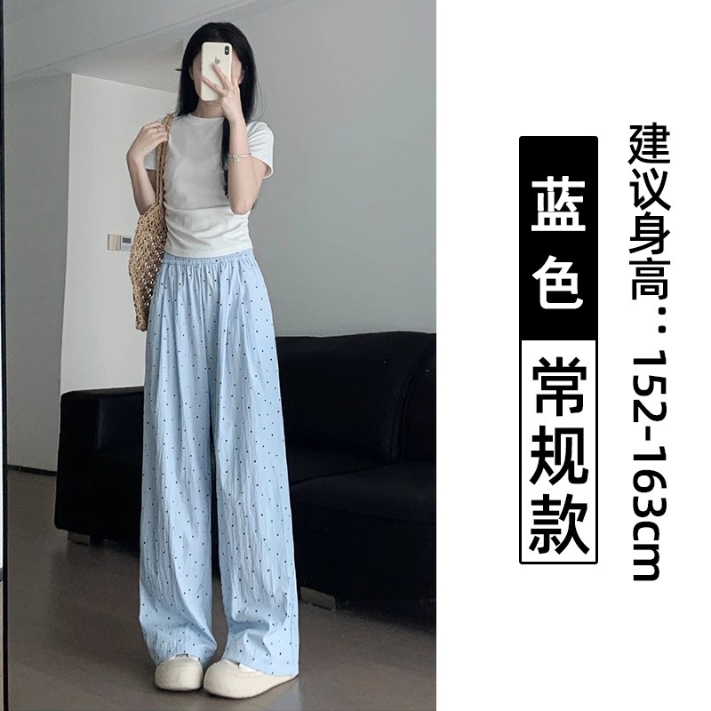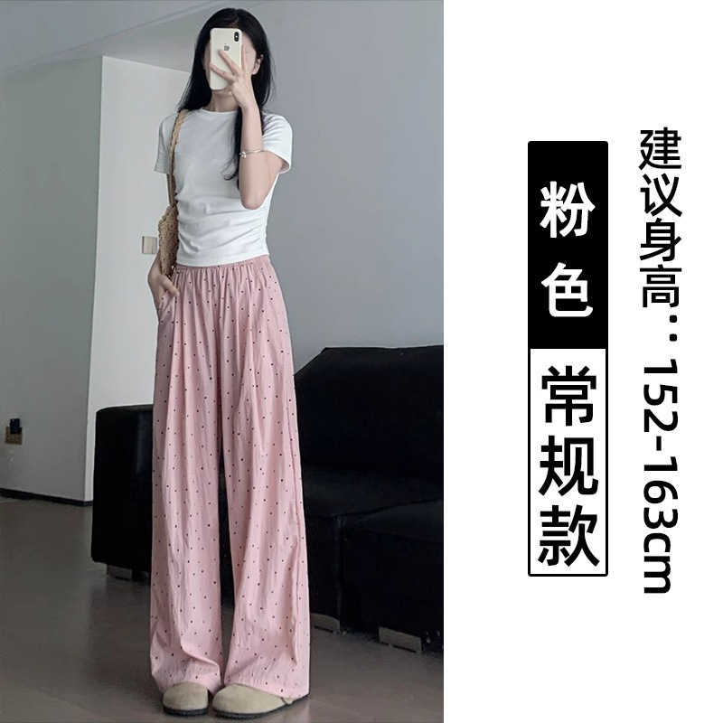 ドット柄ワイドパンツ(レディース・夏用・薄手) 2026年新作 ストレートシルエット 低身長向け ゆったりとした散歩用 UVカット クールシルク素材 山本風パンツ