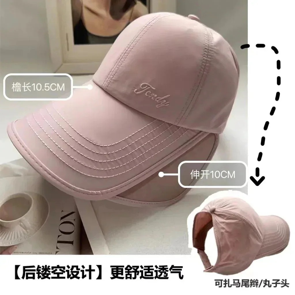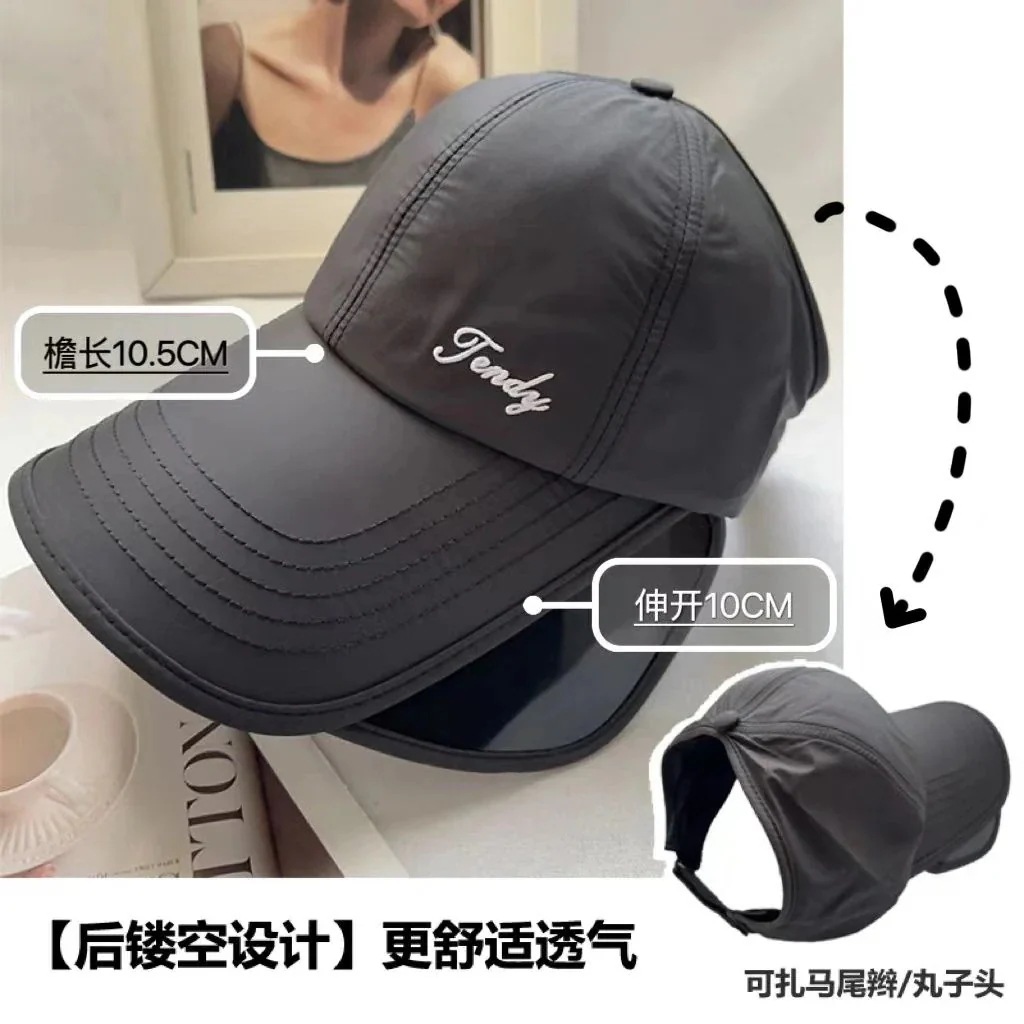 キャップ紫外線対策 日焼け止めキャップ女性サイクリング開閉式大きなつばサンシェード中空トップアヒルの舌野球帽UVカット