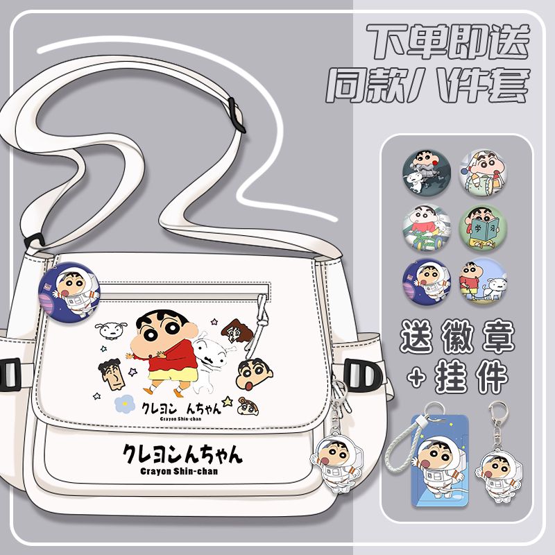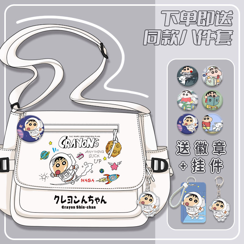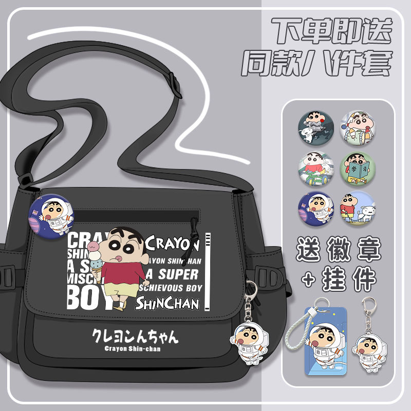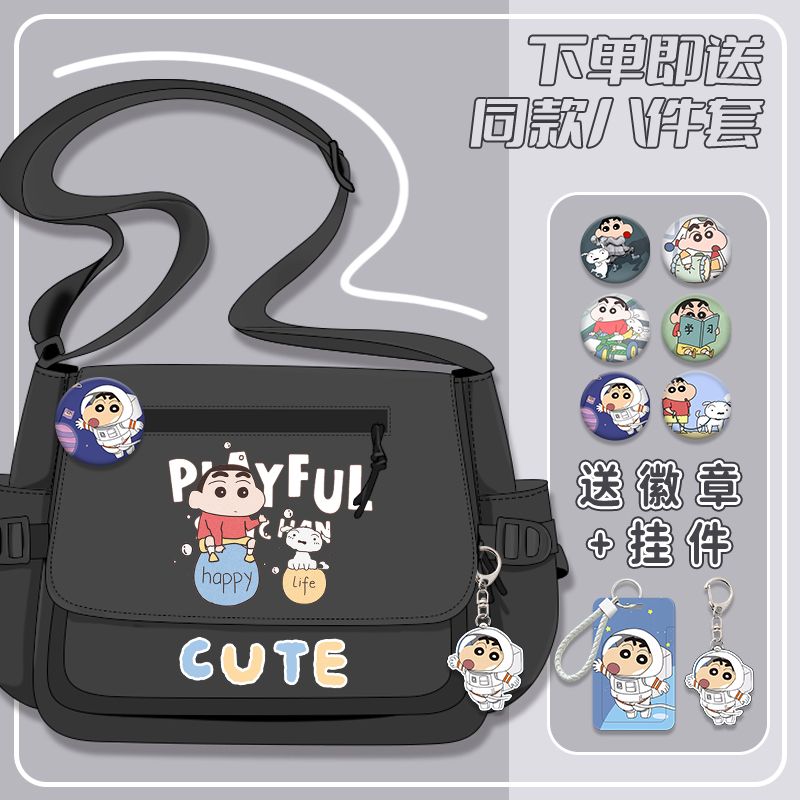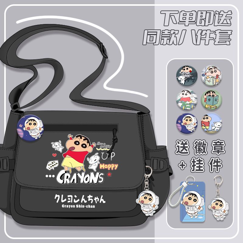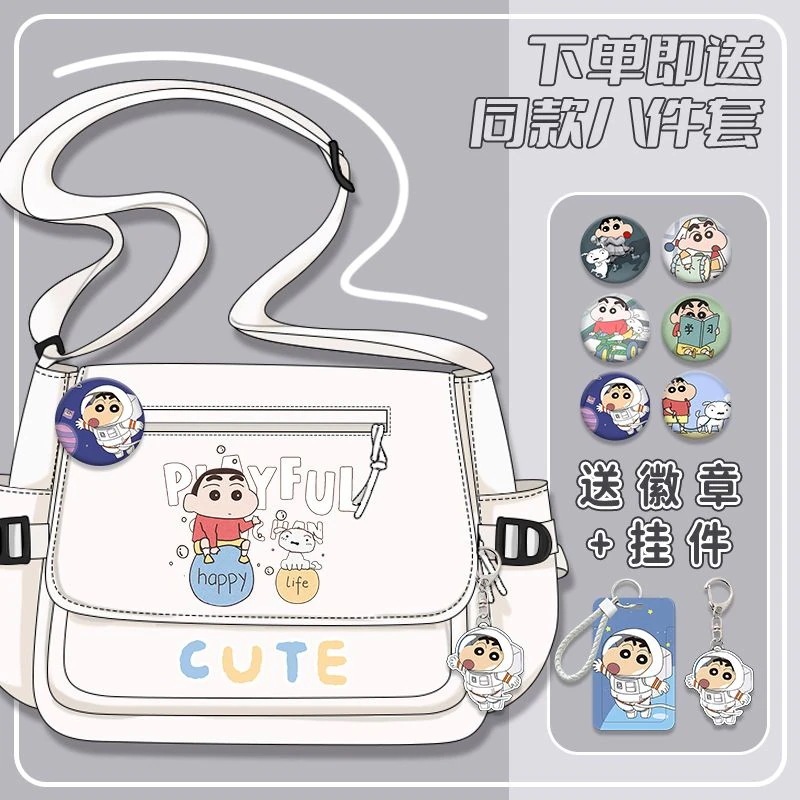 クレヨンしんちゃんシリーズ漫画かわいい男の子女の子小学生大容量キャンバス斜めリュックサック