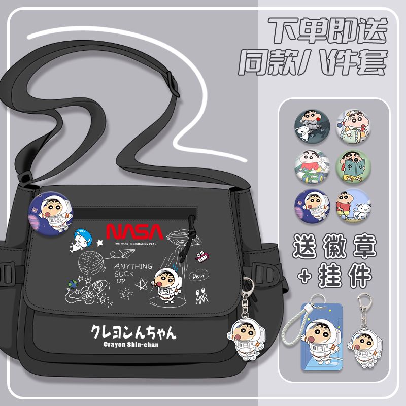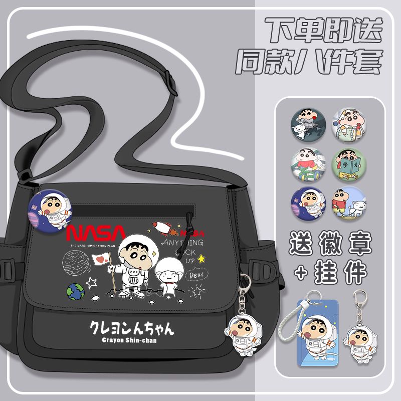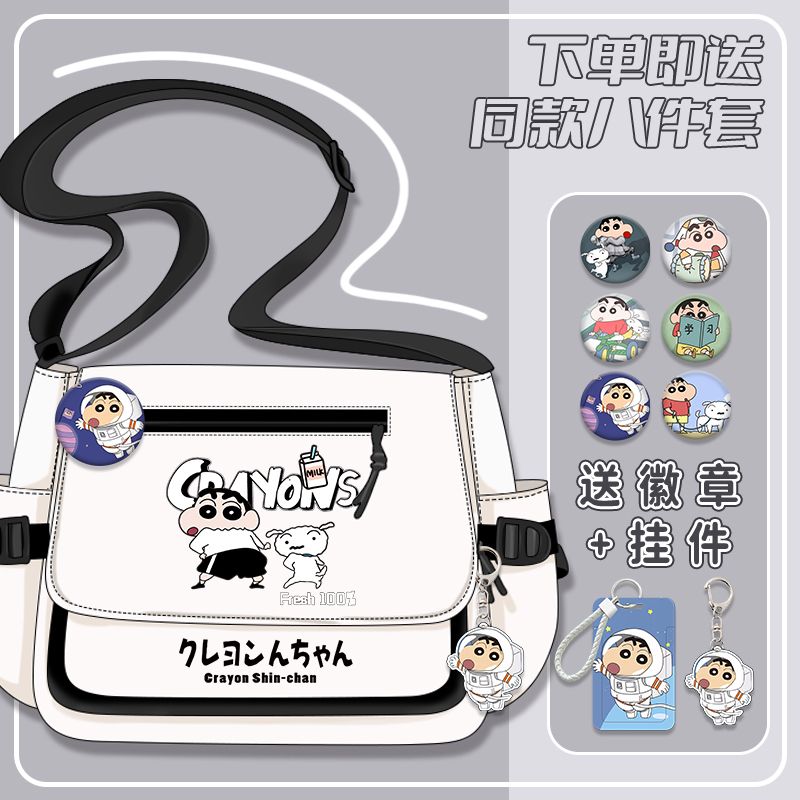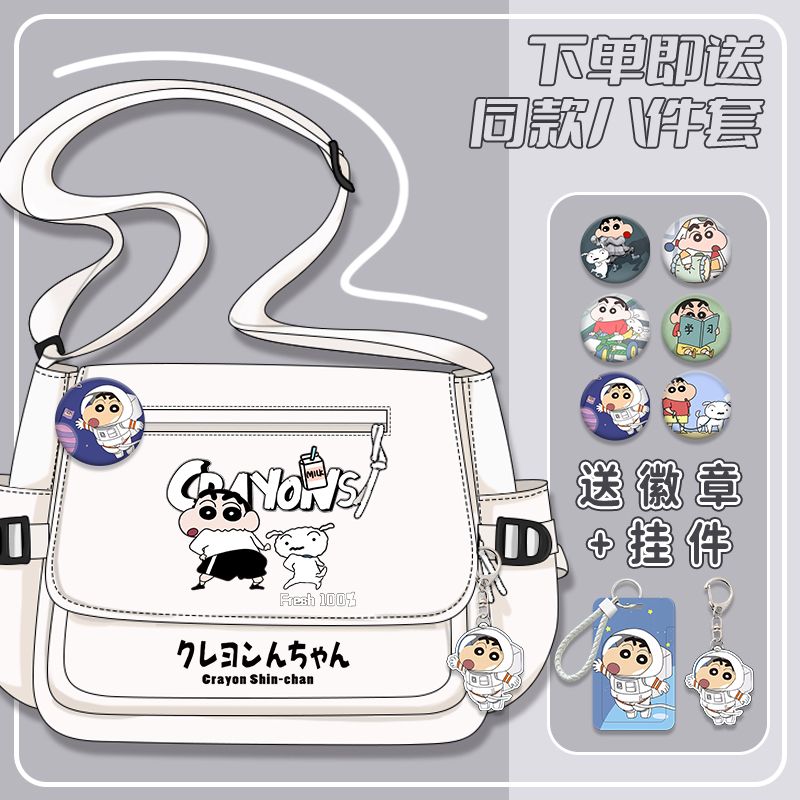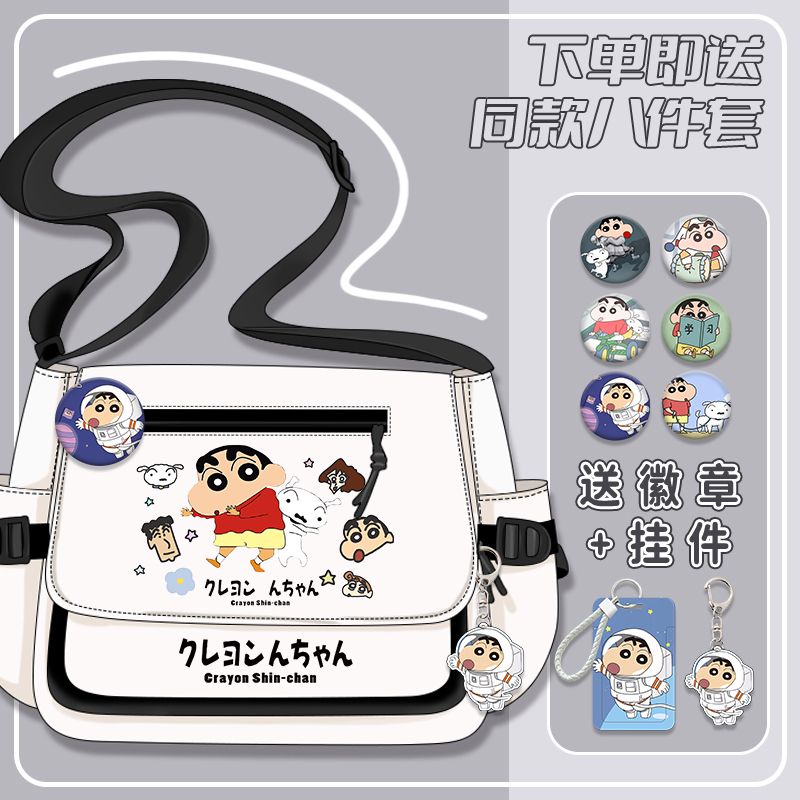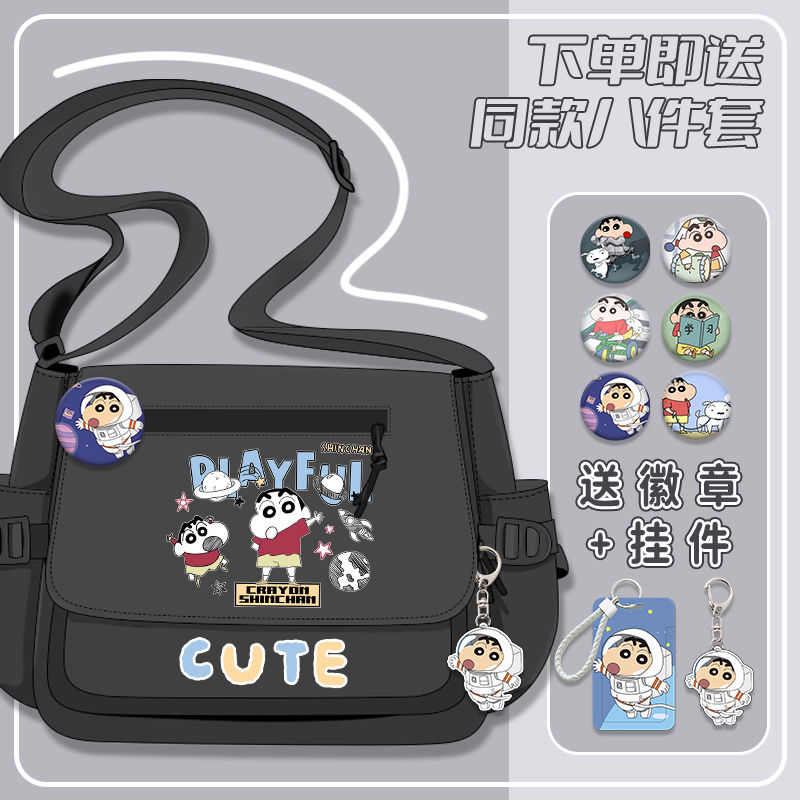 クレヨンしんちゃんシリーズ漫画かわいい男の子女の子小学生大容量キャンバス斜めリュックサック