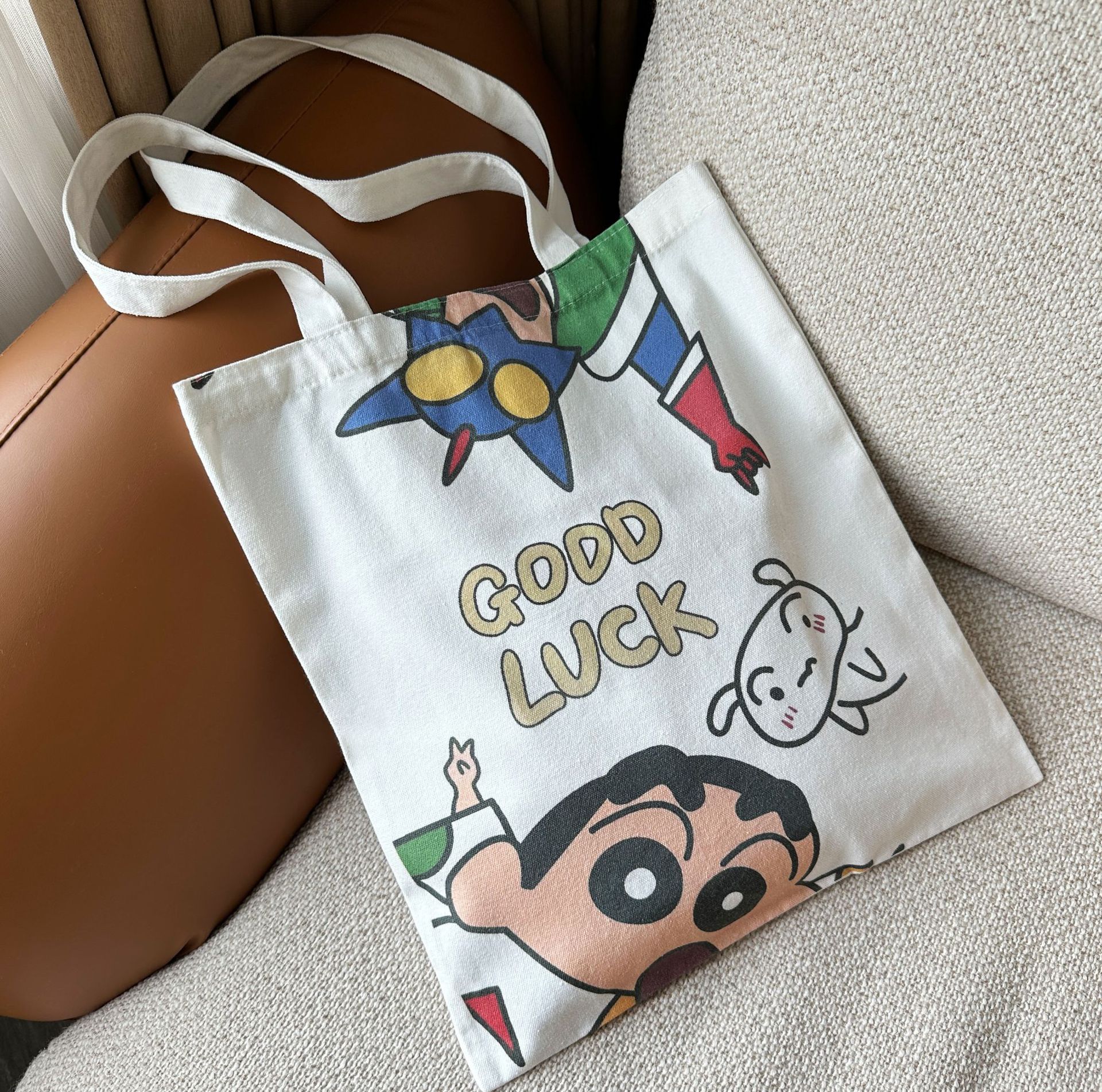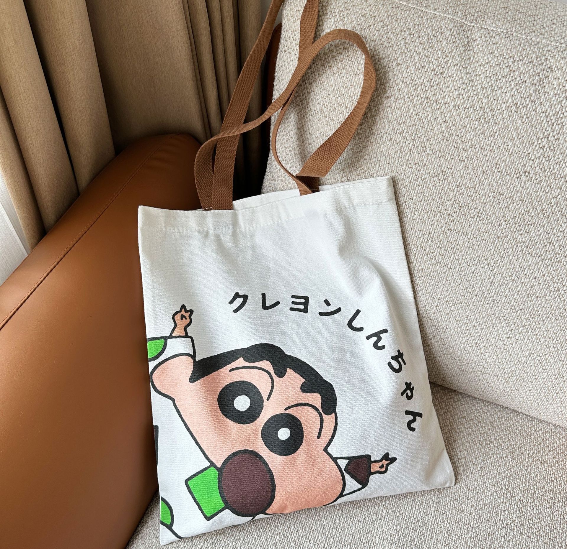 クレヨンしんちゃんバッグ女性かわいい手描き漫画学生大容量キャンバスバッグ授業韓国版手提げレジ袋