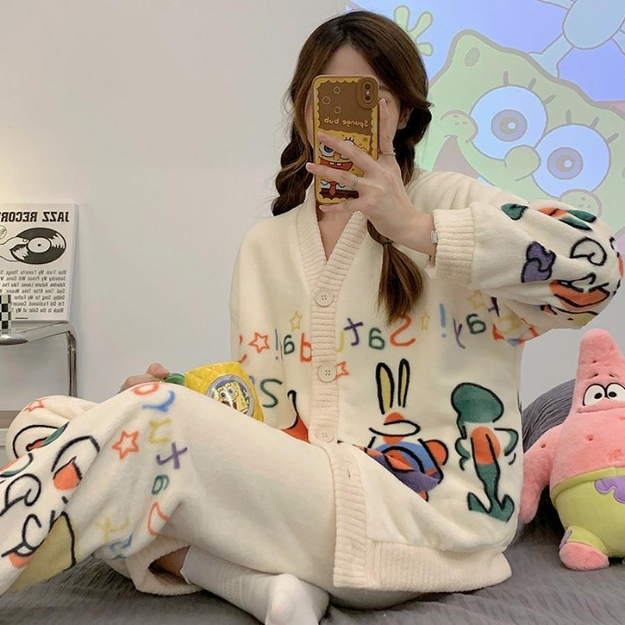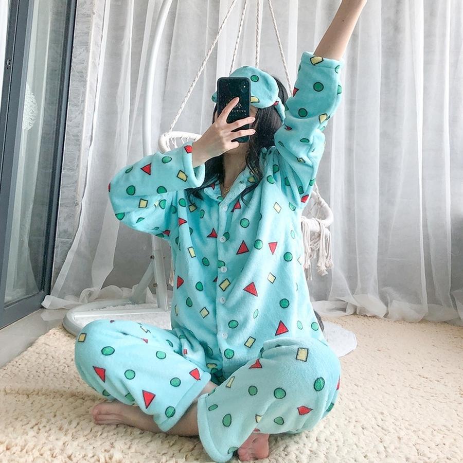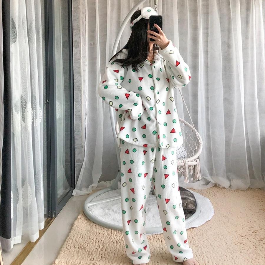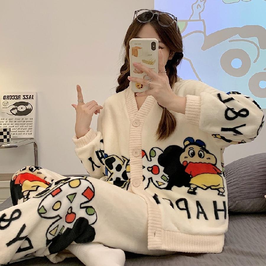 クレヨンしんちゃん パジャマ ウェア 上下セットレディース もこもこ 厚手暖かいナイトウェア