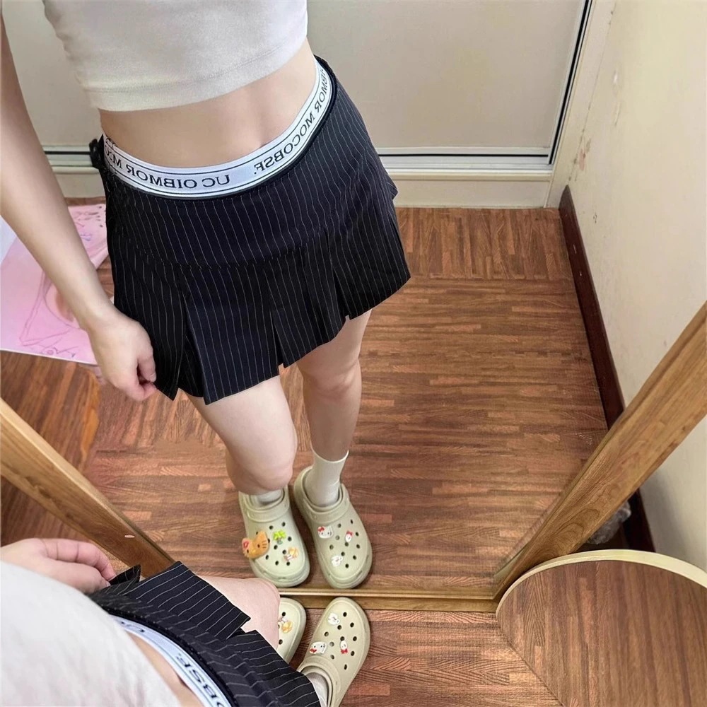 アメリカンレトロ ストライプ プリーツ ローライズ スーツスカート 夏用 スリムシルエット キュートでセクシーなAライン ヒップフィットスカート