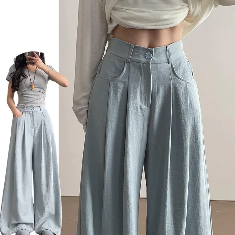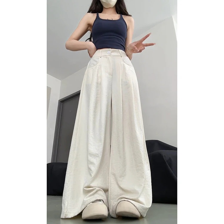 ラフな雰囲気 山本パンツ レディース 春夏 2026年 カジュアルで合わせやすい 小柄な方に 無地 クリーム色のワイドパンツ