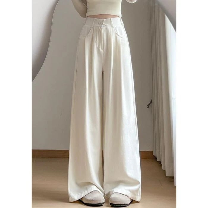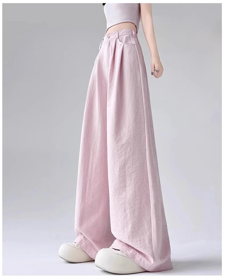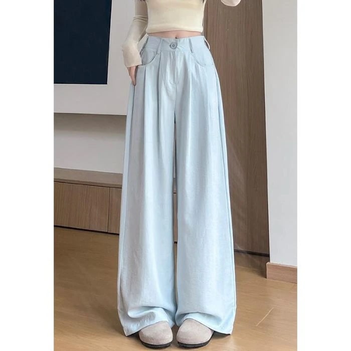 スモーキーブルー スーツ ワイドパンツ レディース 2026年夏 新作 ハイウエスト スリム効果 ゆったり クールシルク フロア丈パンツ 夏