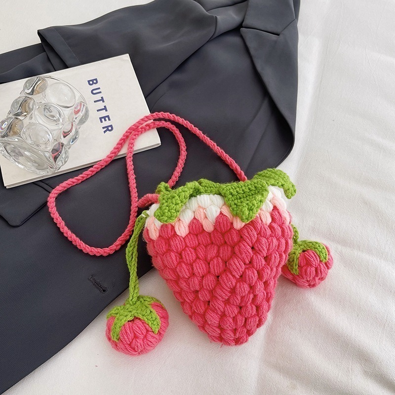手作りの毛糸バッグ完成品ピンクのかわいいベリーバッグ斜め掛けの新しい毛糸バッグナイトブラ トートバッグ