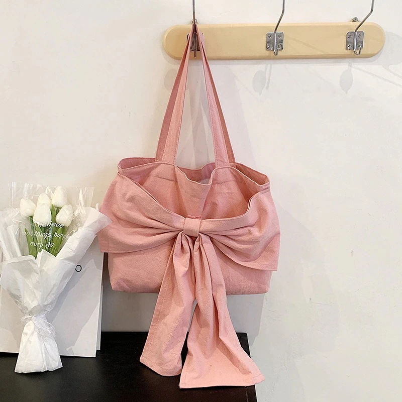 ズックバッグ トートバッグ大容量 2024秋季新作 蝶結びヘ 手提げバッグ かたかた掛け エコバッグ 大容量 バッグ 帆布 ファッション スマホポーチ