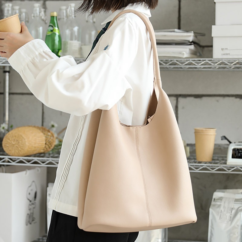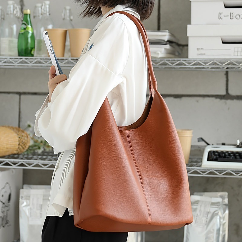 韓国版ファッションソフト皮ハンドバッグネット赤大容量純色バケツバッグカジュアルレイシ紋子母バッグシングルバッグ